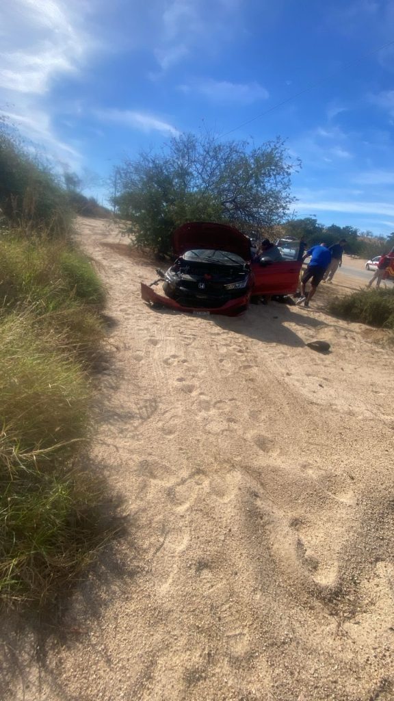 De acuerdo con información del Cuerpo de Bomberos de Cabo San Lucas, al arribar al lugar se localizó un vehículo tipo sedán que terminó varios metros fuera de la vía federal, tras salirse del camino por causas que aún no han sido determinadas.