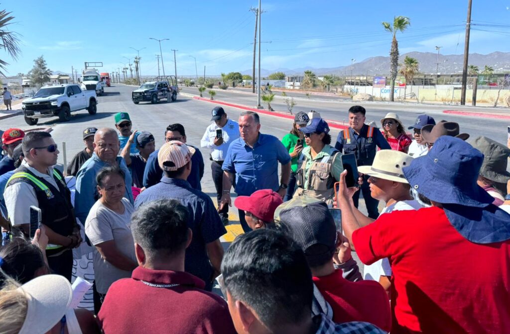 Los Cabos, Baja California Sur.– En representación del alcalde de Los Cabos, Christian Agúndez, el director general de Desarrollo Social, Carlos Castro Ceseña, junto a la delegada municiapal de Cabo San Lucas, Karina de la O Uribe, sostuvo un encuentro con vecinas y vecinos de la colonia Fundadores, quienes mantenían bloqueado el acceso principal a la delegación sanluquense y luego del acercamiento con las autoridades municipales de acordó levantar la manifestación.