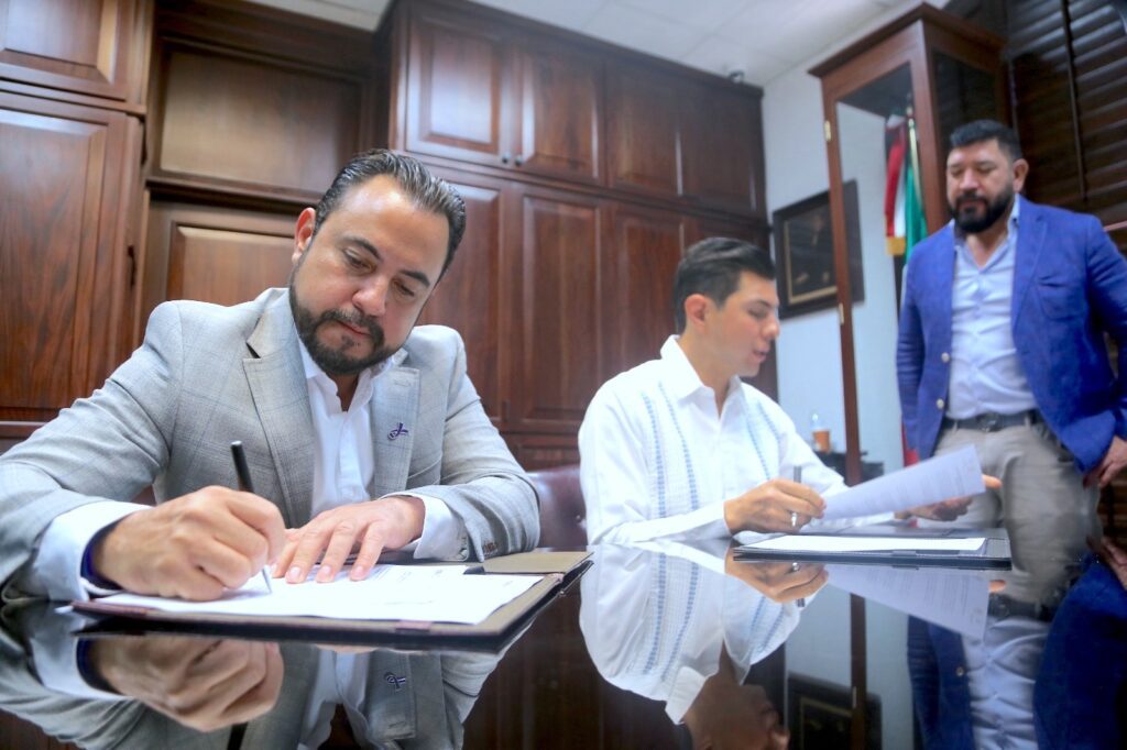 Los Cabos, Baja California Sur.– El presidente municipal de Los Cabos, Christian Agúndez Gómez, recibió este martes 13 de marzo al alcalde de Tecate, Baja California, Román Cota Muñoz, con quien firmó una carta de intención de hermanamiento entre ambos municipios.