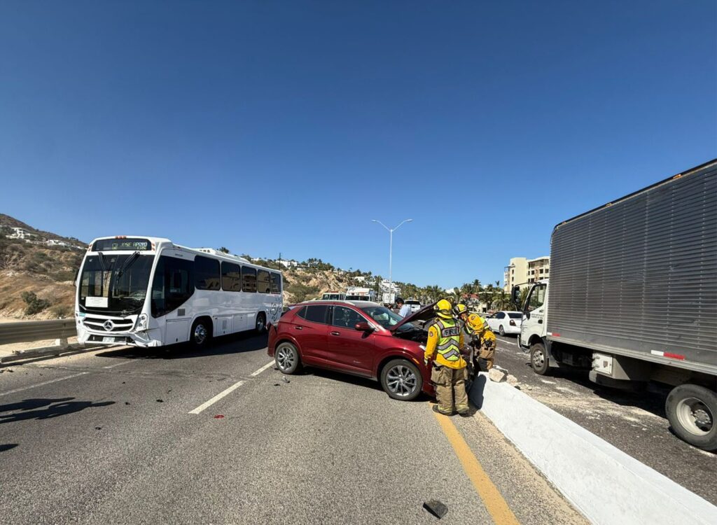 San José del Cabo, Baja California Sur.– Un accidente automovilístico registrado la tarde de este viernes provocó afectaciones en la circulación sobre la carretera Transpeninsular, a la altura del puente de Costa Azul, en el tramo con dirección de San José del Cabo hacia Cabo San Lucas.