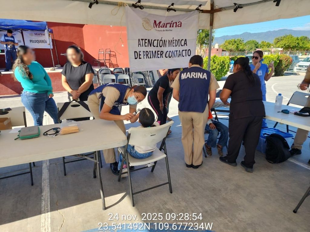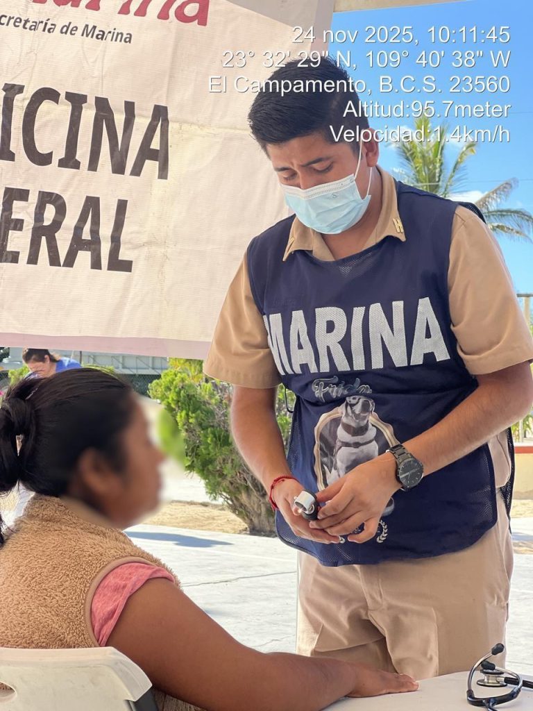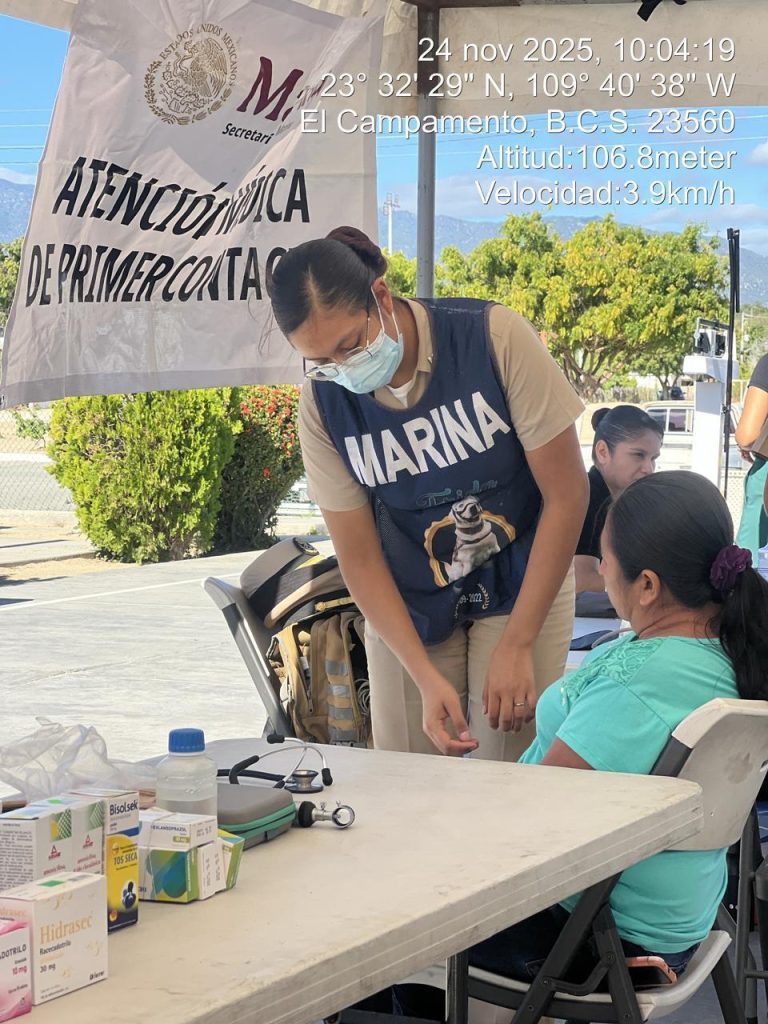 Los Cabos, B.C.S. – La Secretaría de Marina, a través de la Armada de México, por conducto del Sector Naval de Cabo San Lucas, en coordinación con autoridades de salud de los tres órdenes de gobierno, informa que personal naval participará del 24 de noviembre al 11 de diciembre en la implementación del “Programa de Atención Médica de Primer Contacto en Lugares de Difícil Acceso”, en su octava fase “Litoral Pacífico”, en Baja California Sur.