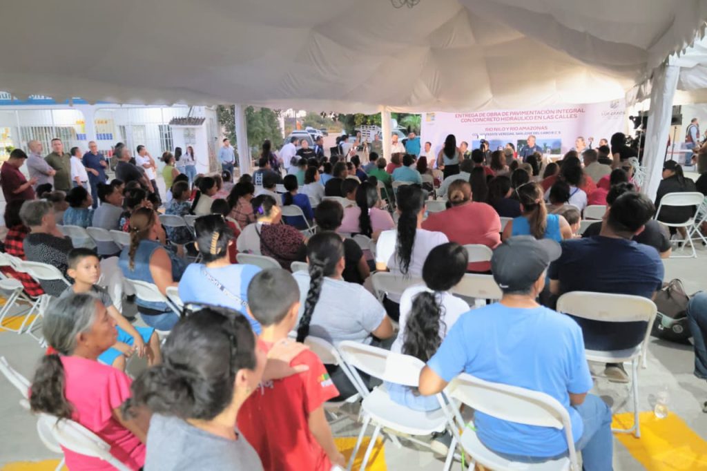 Por su parte, la pavimentación de las calles Río Amazonas y Río Éufrates contempla 268 metros lineales de red de drenaje, 262 metros de red de agua potable, 220 metros lineales de vialidad, mil 793 metros cuadrados de pavimento en concreto hidráulico, 900 metros cuadrados de banquetas y rampas, y ocho postes de alumbrado público LED; con una inversión adicional de $6 millones 955 mil 853.57 pesos, también del Ramo 28.