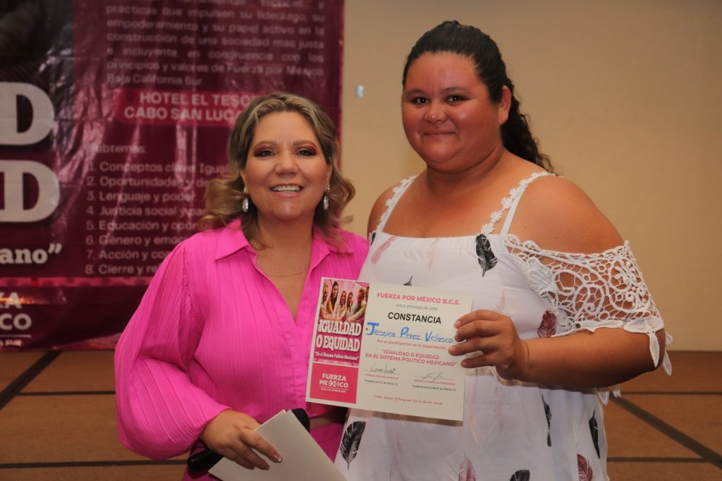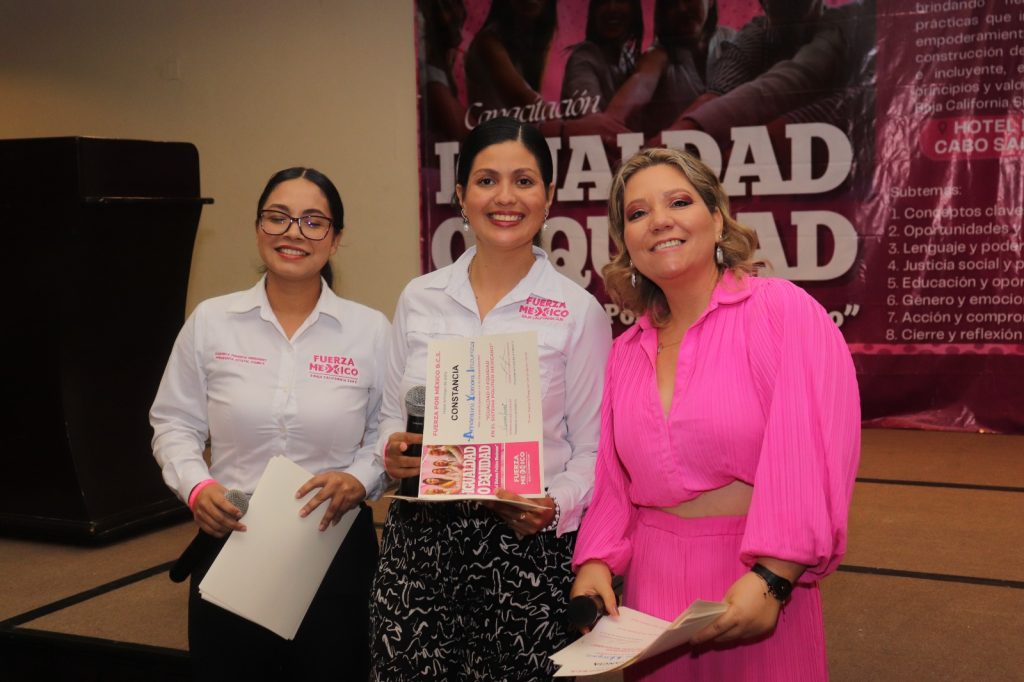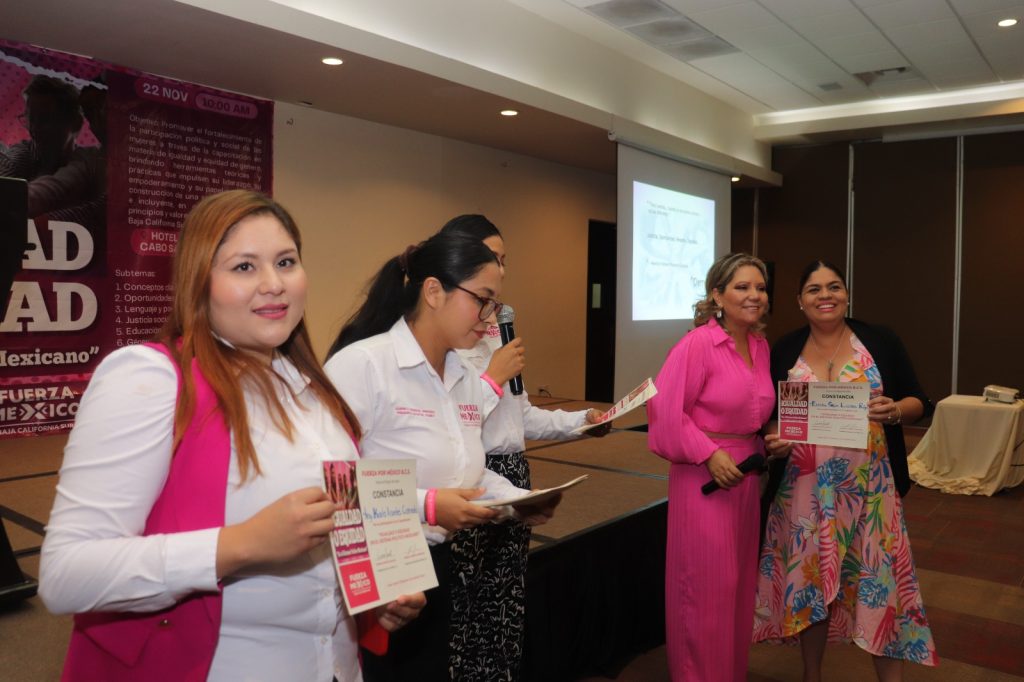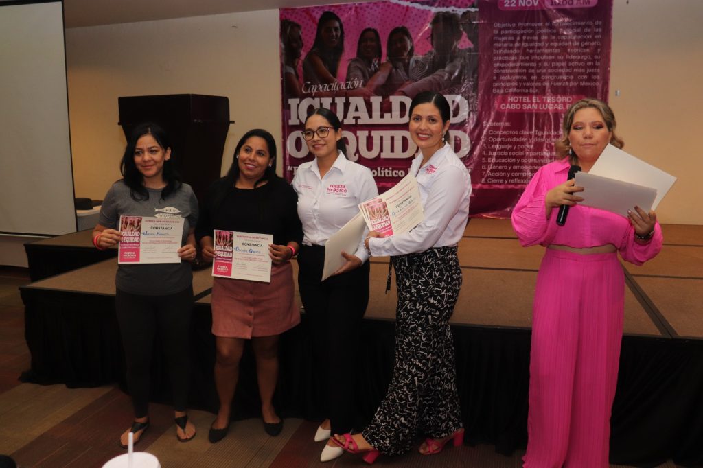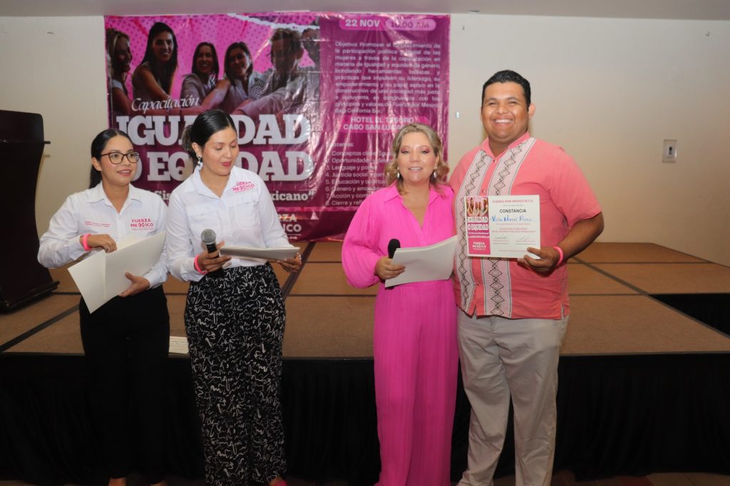 Cabo San Lucas.- El Partido Fuerza por México Baja California Sur llevó a cabo este sábado 22 de noviembre la capacitación “Equidad e igualdad en el sistema político mexicano”, con el objetivo de fortalecer la participación política, especialmente de las mujeres, y promover una vida pública con igualdad de oportunidades para todas y todos.