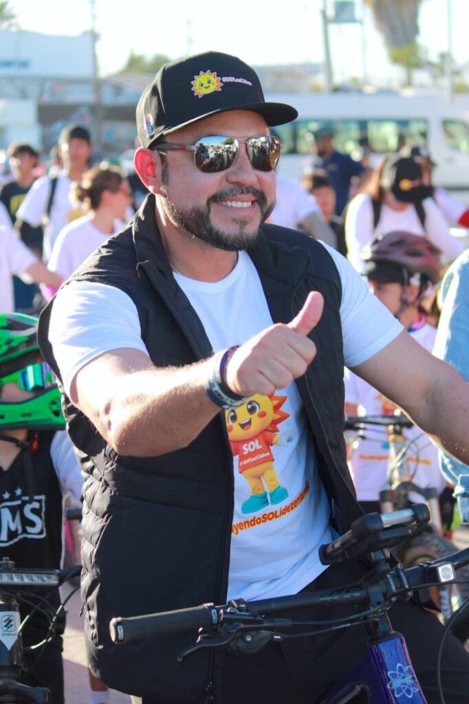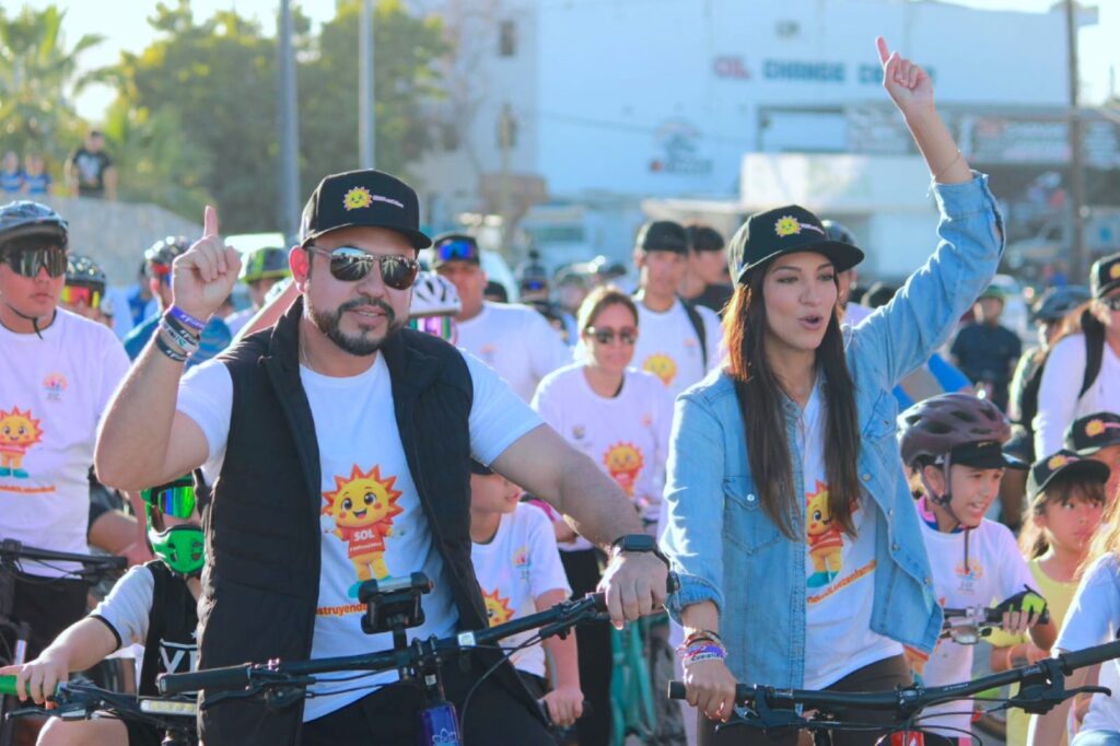 Los Cabos, Baja California Sur.– El presidente municipal del XV Ayuntamiento de Los Cabos, Christian Agúndez Gómez, acompañado de su esposa y presidenta honoraria del Sistema Municipal para el Desarrollo Integral de la Familia (SMDIF), Sol Delgado Moreno, así como de sus 3 hijas, encabezó una rodada ciclista, en el marco del Día de la Familia, la cual contó con la participación de personas servidoras públicas y ciudadanía en general.