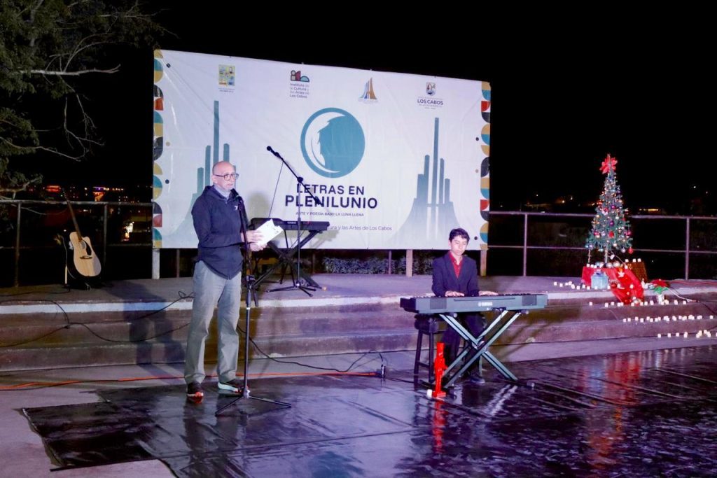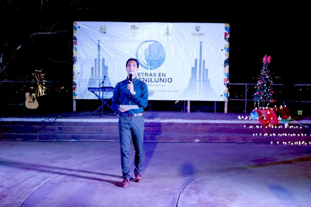 Los Cabos, Baja California Sur.- El XV Ayuntamiento de Los Cabos, a través del Instituto de la Cultura y las Artes (ICA) y en coordinación con la Casa de Cultura “Profa. Nieves Trasviña de Ceseña”, llevó a cabo la última edición del año del programa permanente “Letras en Plenilunio, ecos de luna”, en su versión especial navideña. La actividad tuvo como escenario la explanada del Cerrito del Timbre, en Cabo San Lucas, donde familias, visitantes y amantes del arte se reunieron para disfrutar de una velada cultural bajo la luna llena.