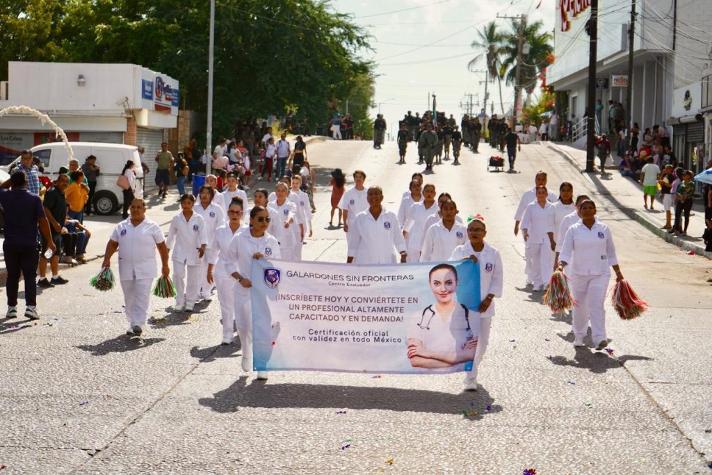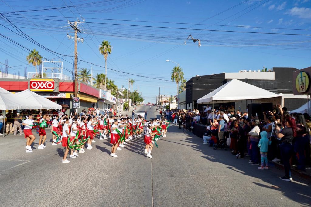 El desfile inició con la banda de guerra y escolta del CBTIS 256, dando paso a los contingentes escolares del Centro de Atención Múltiple “Profr. Juan Pedrín Castillo”, así como de las primarias Amelia Wilkes, Ramón Green Álvarez, Efraín Ceseña Ceseña, Ildefonso Green Ceseña, Jesús Castro Agúndez y el Colegio Leonardo Da Vinci. En nivel secundaria participaron la Técnica No. 18 Moisés Sáenz Garza, Secundaria General No. 8, Técnica No. 16, Raúl Enrique Guerrero Montaño y Técnica No. 19.