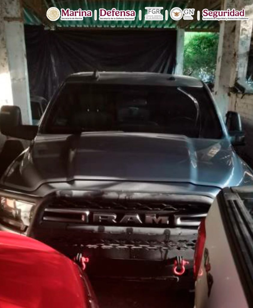 Mediante labores de investigación de campo y gabinete en el municipio de Tierra Blanca, se identificaron tres domicilios en las colonias Hojas de Maíz y la carretera federal Tinaja – Tierra Blanca, donde al ejecutar las órdenes de cateo, se aseguraron cuatro armas de fuego largas, 166 cartuchos, seis granadas, 39 vehículos, nueve tractocamiones, seis camiones de volteo, dos vehículos tipo pipa, dos remolques, dos retroexcavadoras, una camioneta tipo redilas y cinco motocicletas, una contadora de billetes, cinco cámaras fotográficas, una videocámara, 17 equipos telefónicos, dinero en efectivo y otros aparatos electrónicos.
