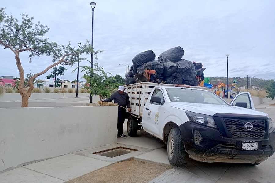 Como parte de los trabajos permanentes orientados a mantener en óptimas condiciones los espacios públicos de Cabo San Lucas, la Coordinación de Servicios Públicos realizó una jornada intensiva de recolección de basura y ramas en distintos parques y unidades deportivas de la delegación, logrando retirar tres camiones de desechos acumulados.