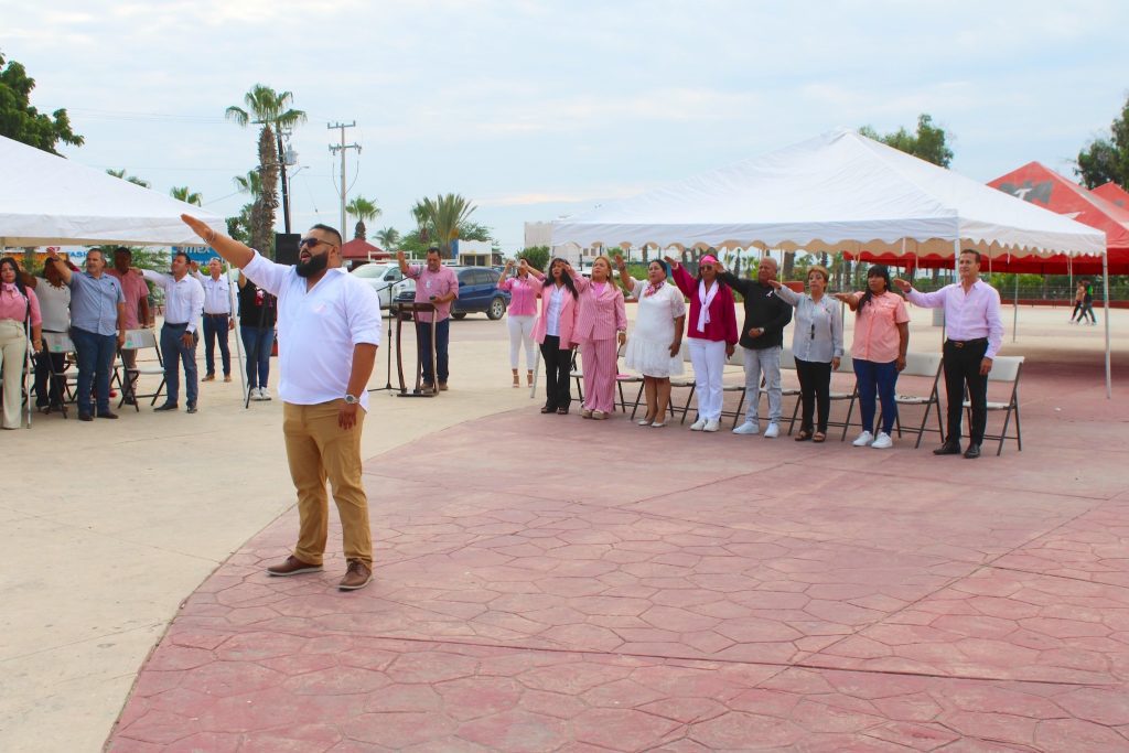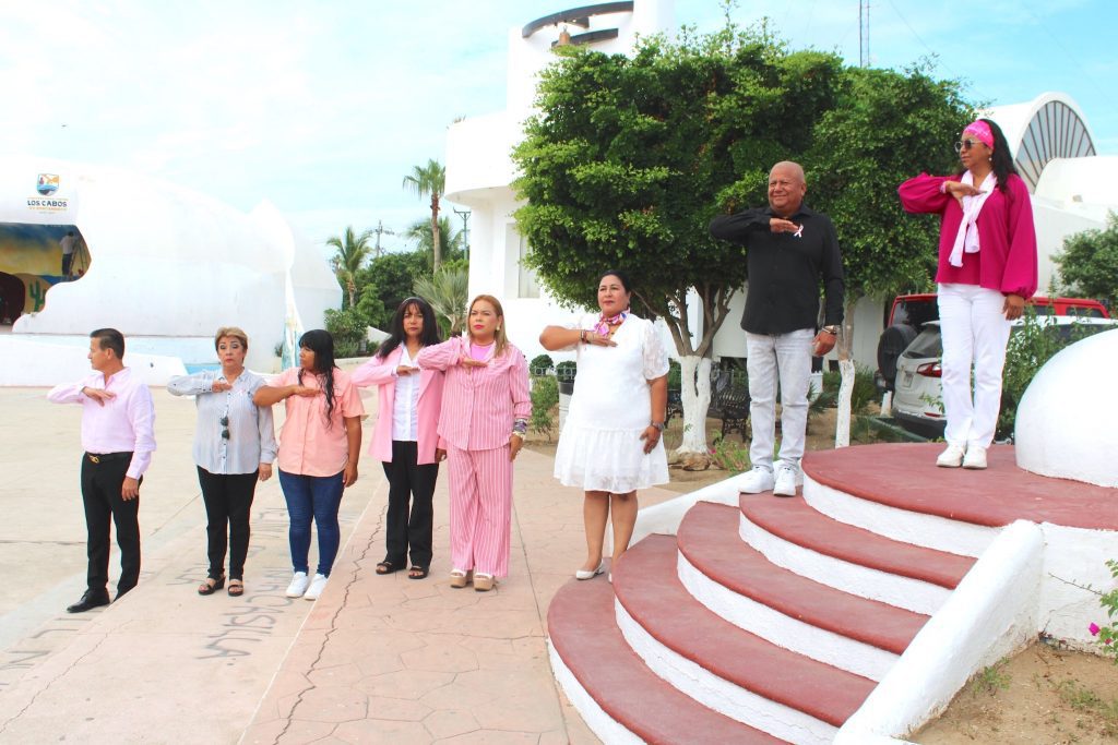 Los Cabos, Baja California Sur.– En el marco del Mes de Sensibilización sobre el Cáncer de Mama, la Delegación Municipal de Cabo San Lucas, a través de la Coordinación de Educación, realizó la ceremonia de lunes cívico, con la participación del personal del Sistema DIF Delegacional, sumándose al llamado de concientización sobre la detección oportuna y la prevención de esta enfermedad.