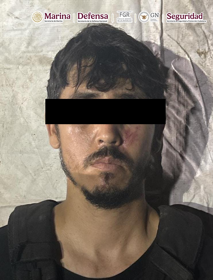 ·         El detenido es identificado como integrante de una célula delictiva que opera en la región, entre lo asegurado se encuentran armas largas, municiones, droga, vehículos con blindaje artesanal, artefactos explosivos, radios y equipo táctico
