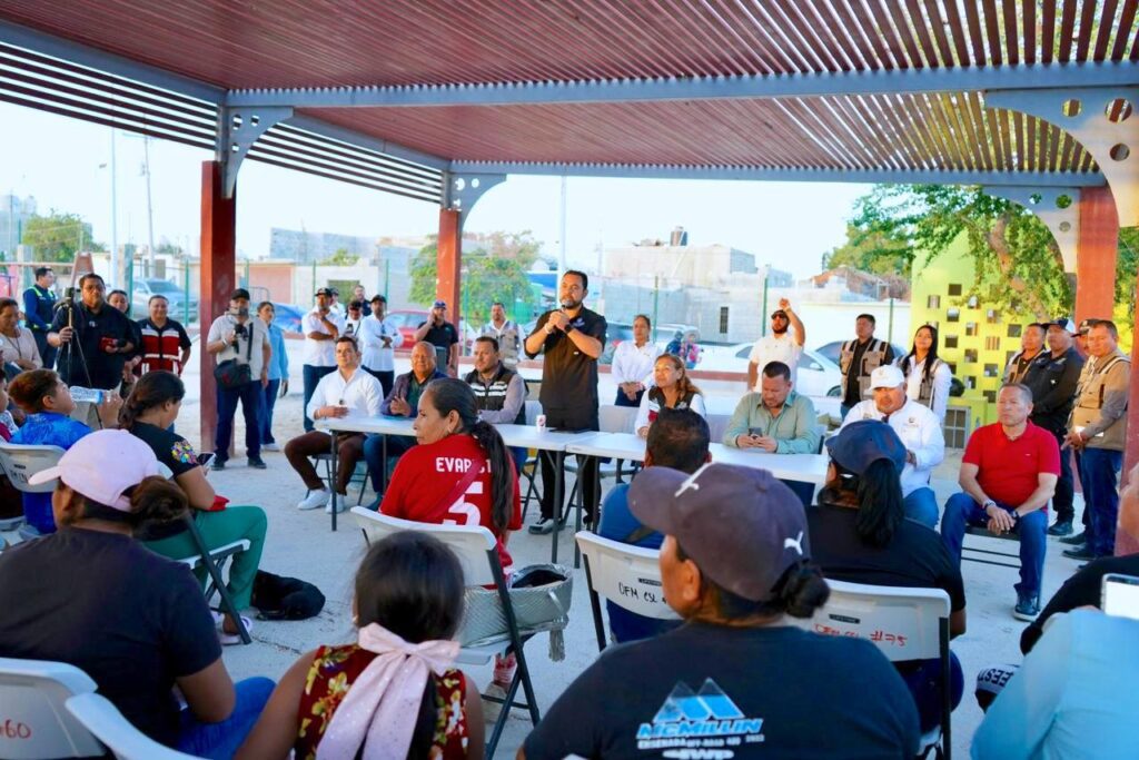 Los Cabos, Baja California Sur.– El presidente municipal de Los Cabos, Christian Agúndez Gómez, sostuvo un encuentro con habitantes de la colonia Leonardo Gastelum Villalobos, en Cabo San Lucas. En la reunión estuvo acompañado por directoras y directores de diversas dependencias del Ayuntamiento, con la finalidad de escuchar a vecinas y vecinos, y dar seguimiento a las principales necesidades de la comunidad.