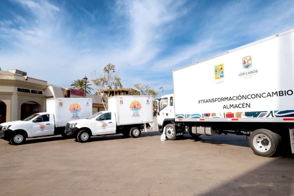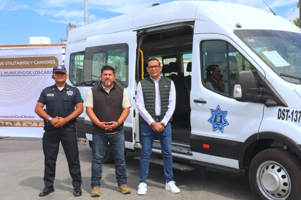 Los Cabos, Baja California Sur.– El presidente municipal Christian Agúndez Gómez encabezó la entrega de cuatro unidades móviles destinadas al Sistema Municipal DIF, Seguridad Pública y el área de Almacén del Ayuntamiento de Los Cabos.
