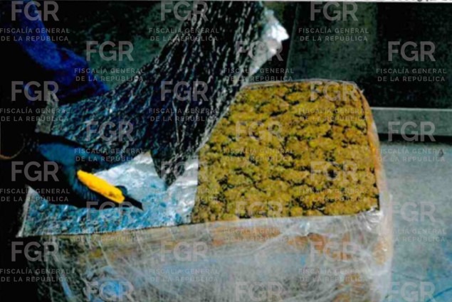 En el cateo llevado a cabo en el inmueble, con el apoyo de elementos de la Policía Federal Ministerial, Servicios Periciales, personal de la Secretaría de la Defensa Nacional (Defensa) y de la Guardia Nacional (GN), quienes aseguraron 32 paquetes de cannabis sativa l., con un peso total de 265 kilos 634 gramos y el inmueble.