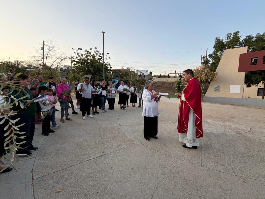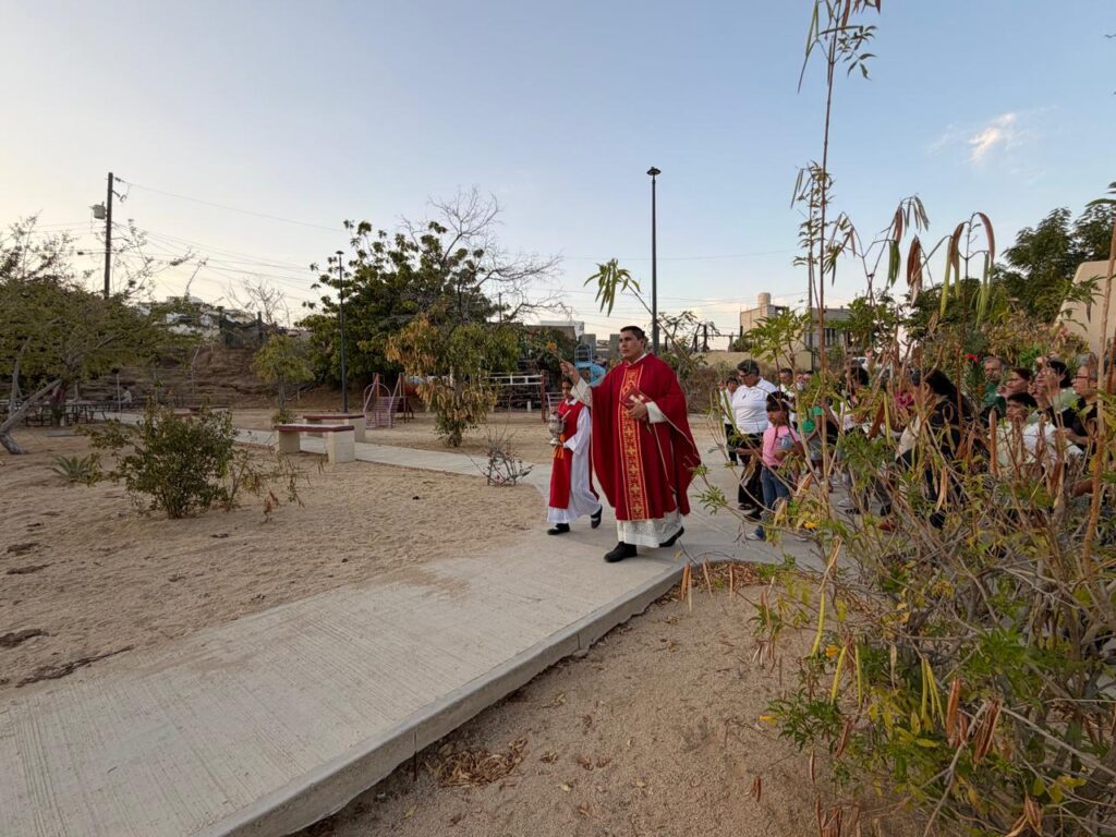 San José del Cabo.– Cientos de fieles católicos participan en las celebraciones religiosas de Semana Santa en distintos templos del municipio. Las actividades iniciaron el pasado domingo con la conmemoración del Domingo de Ramos, donde se realizaron procesiones con palmas antes de la eucaristía, como ocurrió en la capilla de la colonia Luis Donaldo Colosio.
