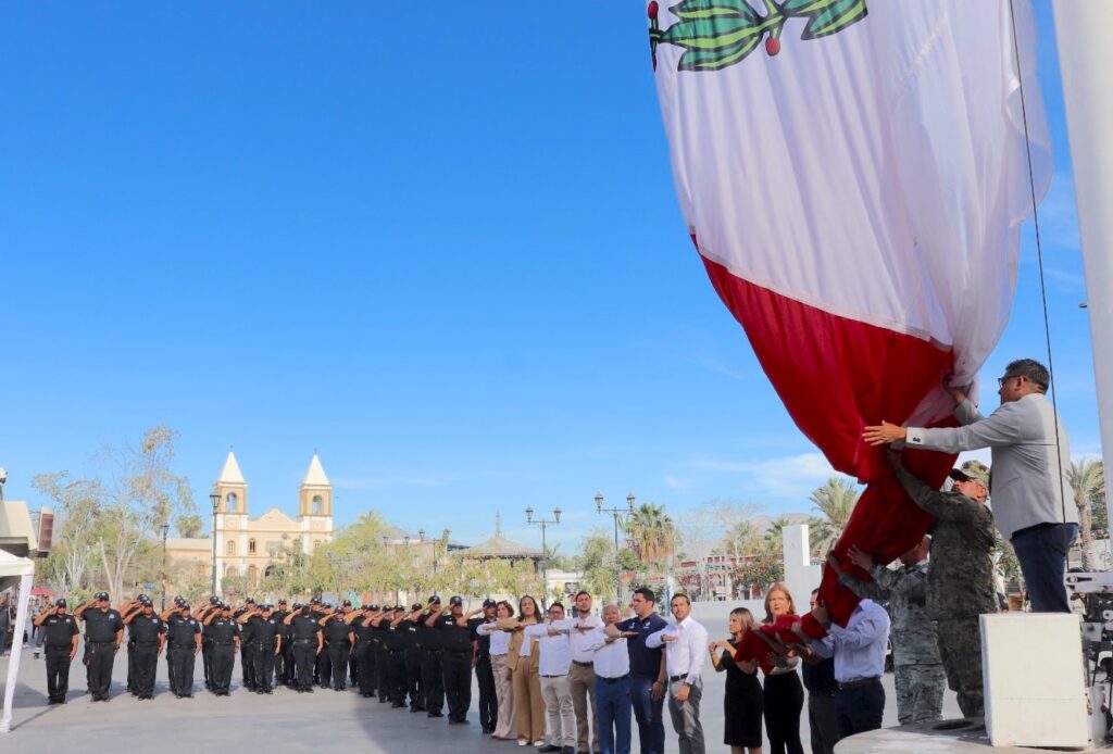 Los Cabos, Baja California Sur.– El XV Ayuntamiento de Los Cabos, a través de la Dirección Municipal de Gobierno, en coordinación con la Dirección Municipal de Educación, realizó la ceremonia de honores a los símbolos patrios en la explanada del palacio municipal.
