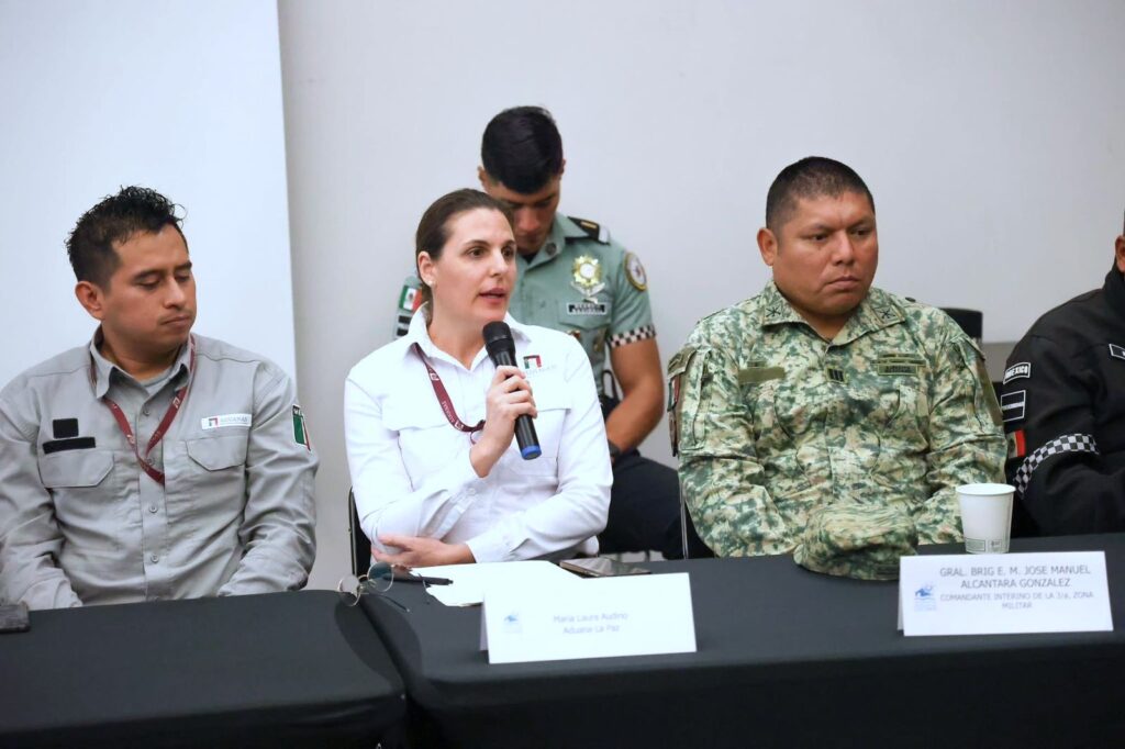 Los Cabos, Baja California Sur.– Para fortalecer la seguridad y el orden en las zonas de mayor afluencia turística, el XV Ayuntamiento de Los Cabos, a través de la Dirección General de Seguridad Pública, Policía Preventiva y Tránsito Municipal, participó en una mesa de trabajo con asociaciones hoteleras y autoridades de los tres órdenes de gobierno, orientada a consolidar acciones conjuntas en materia de prevención y vigilancia.