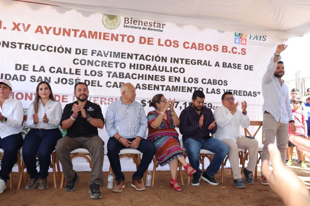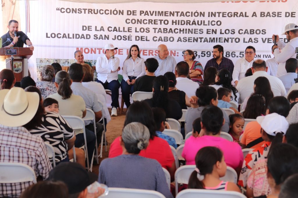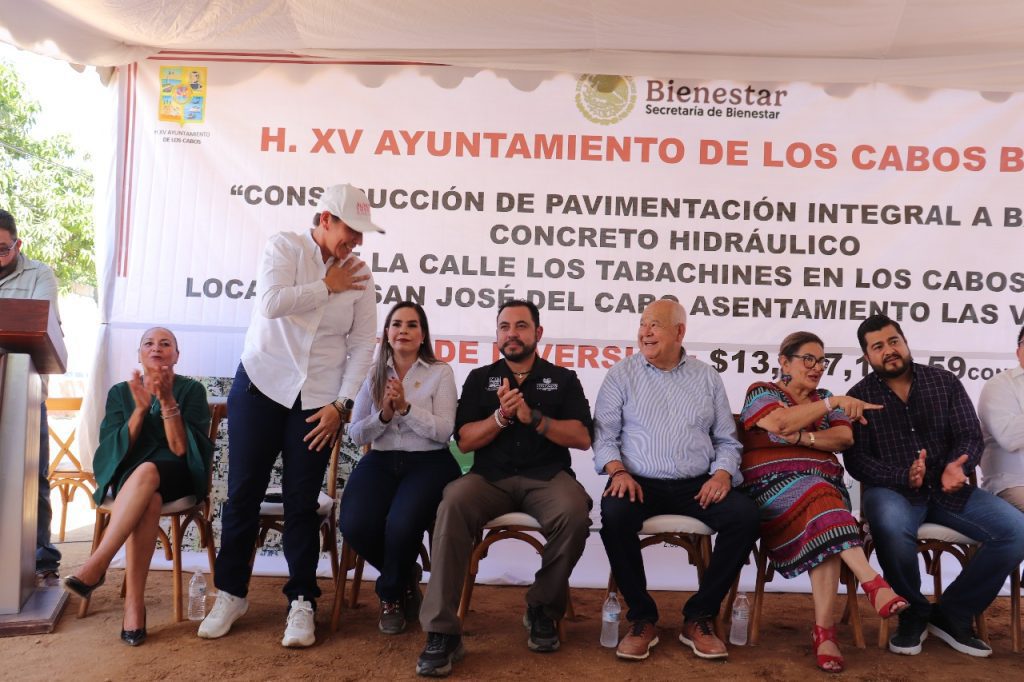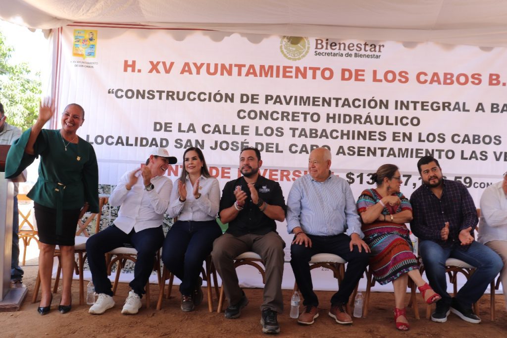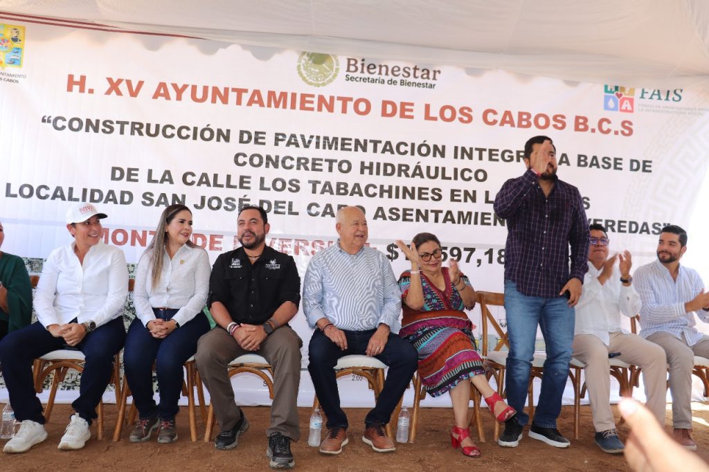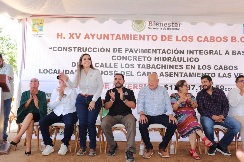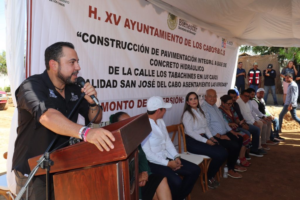 San José del Cabo.– El gobernador del estado, Víctor Castro Cosío, y el presidente municipal de Los Cabos, Christian Agúndez Gómez, dieron inicio a la obra de pavimentación de la calle Tabachines, ubicada en la colonia Las Veredas, con una inversión de 13.5 millones de pesos.