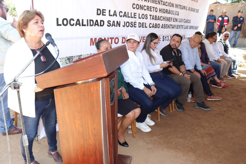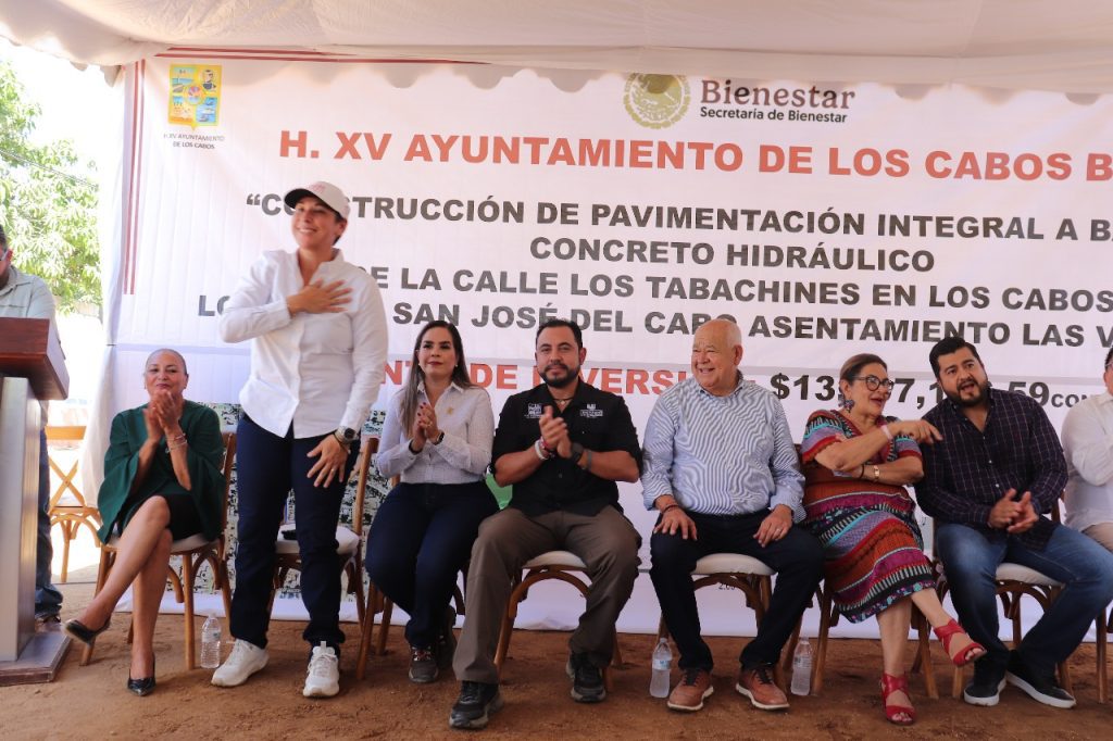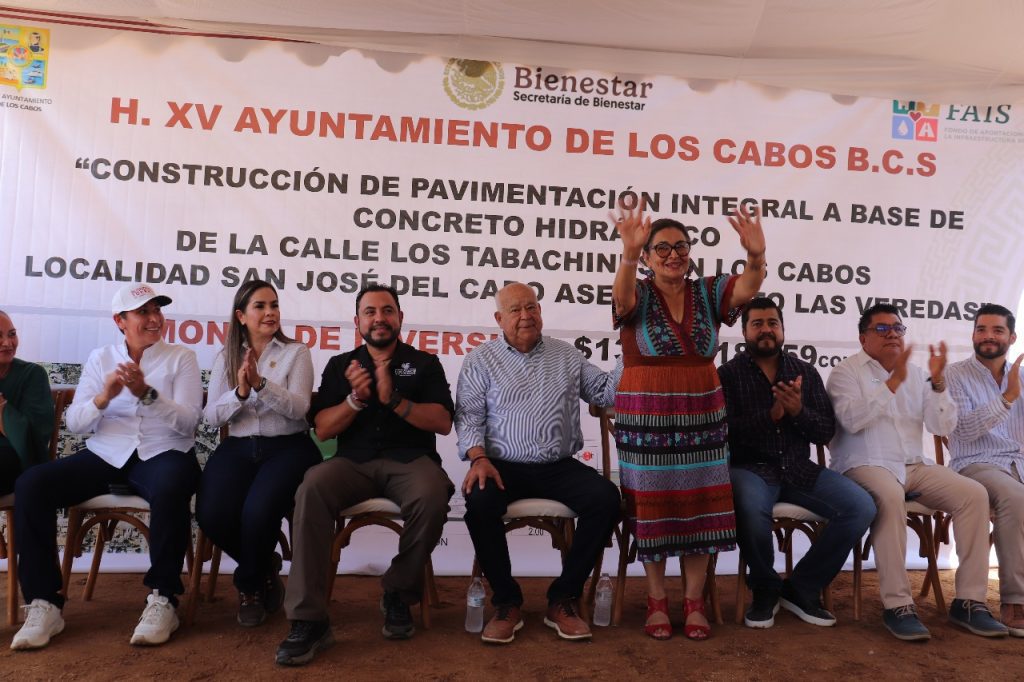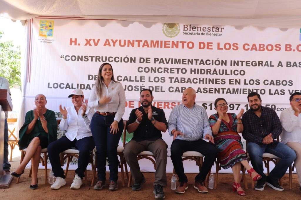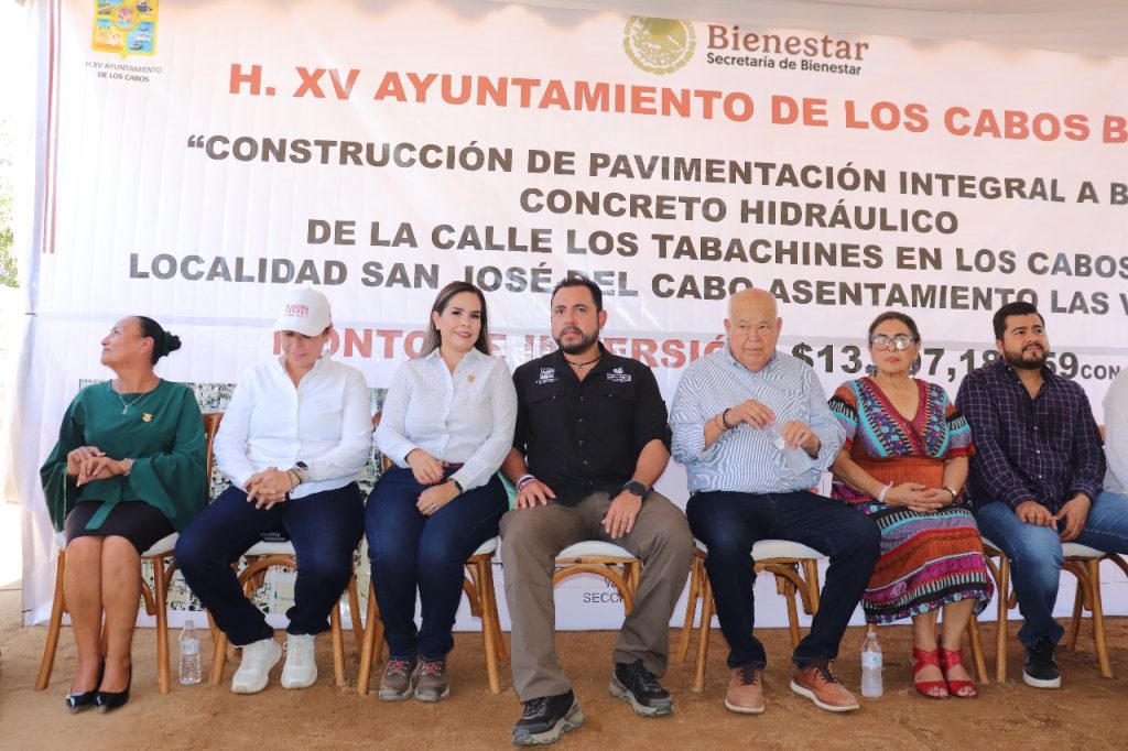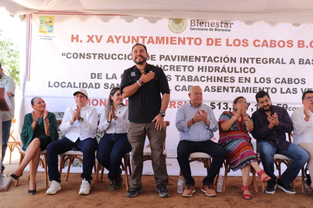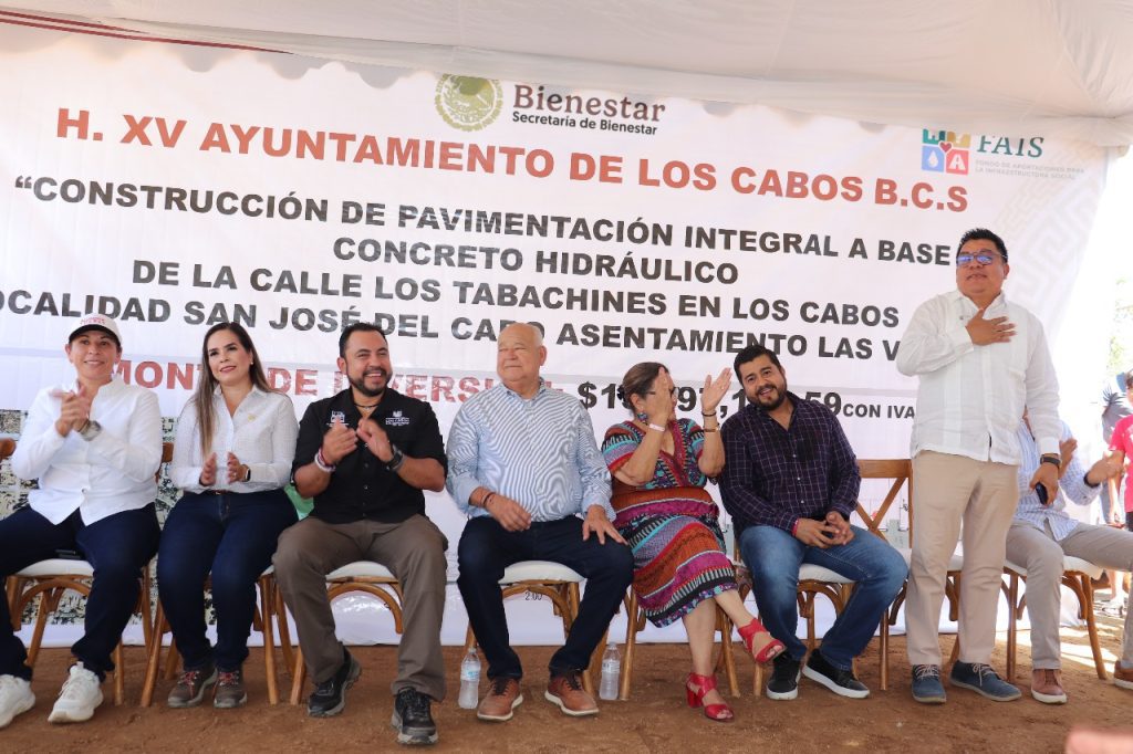San José del Cabo.– El gobernador del estado, Víctor Castro Cosío, y el presidente municipal de Los Cabos, Christian Agúndez Gómez, dieron inicio a la obra de pavimentación de la calle Tabachines, ubicada en la colonia Las Veredas, con una inversión de 13.5 millones de pesos.