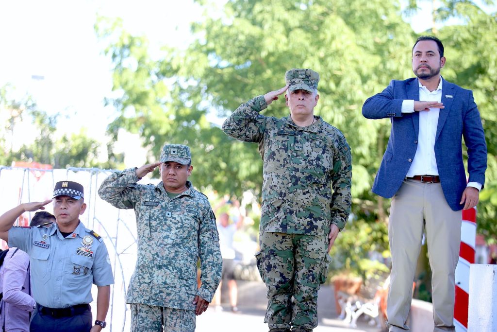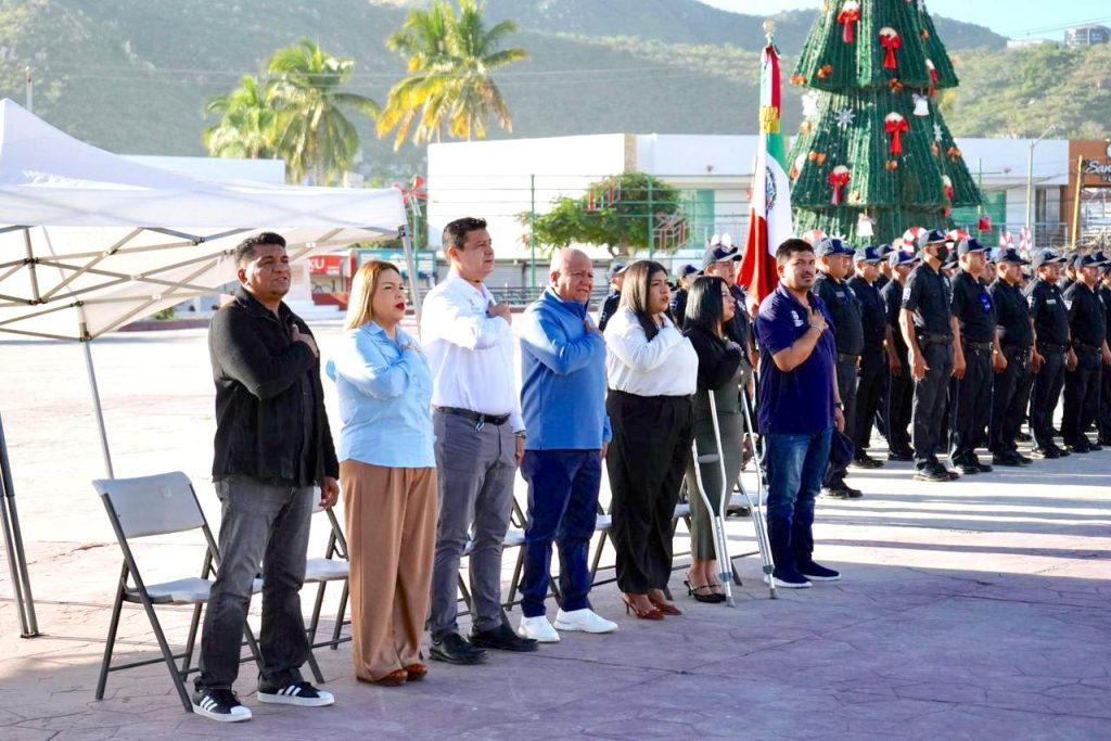 Durante la ceremonia cívica realizada en Cabo San Lucas, la Coordinación de Educación contó con el acompañamiento de la Subcoordinación de Derechos Humanos, además de la presencia de diversas autoridades municipales que reforzaron el compromiso institucional con la formación cívica y la promoción de los derechos fundamentales.