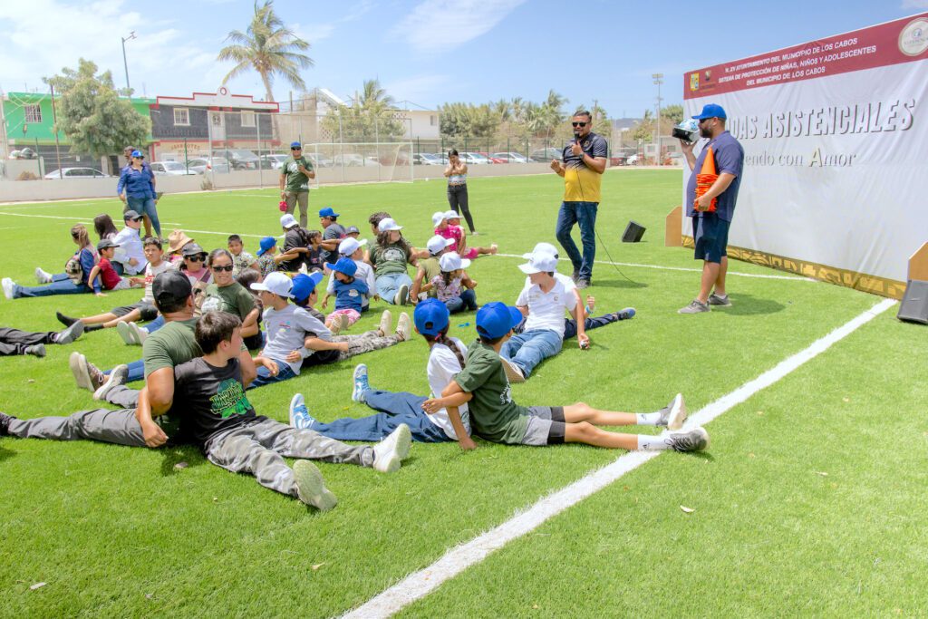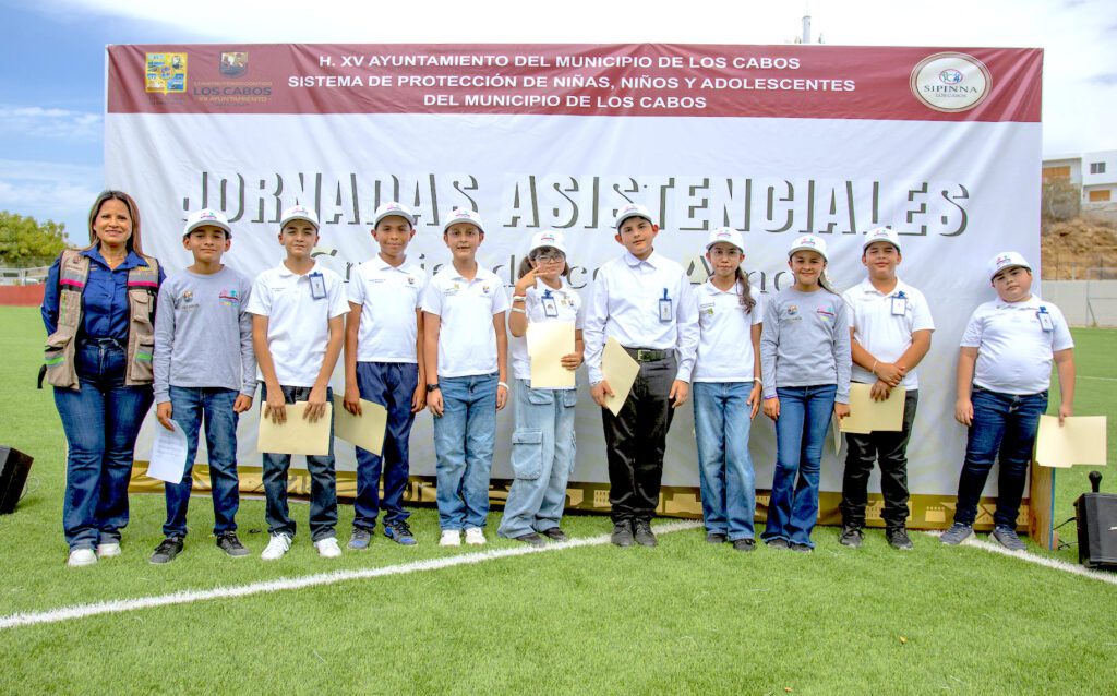 Los Cabos, Baja California Sur.– El XV Ayuntamiento de Los Cabos, a través de la Secretaría Ejecutiva del Sistema de Protección Integral de Niñas, Niños y Adolescentes (SIPINNA) de Los Cabos, llevó a cabo la jornada asistencial “Creciendo con Amor” en el campo de fútbol ubicado en el vado de Santa Rosa, con el objetivo de promover los derechos de niñas, niños y adolescentes.