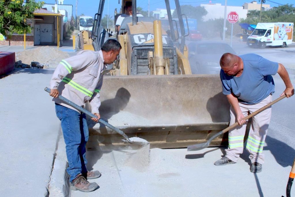 Los Cabos, Baja California Sur.-El  equipo de la dirección general de Servicios Públicos, que dirige Manuel Ernesto Montaño Castro, intensificó los trabajos de rehabilitación y desazolve en diferentes puntos de la delegación de Cabo San Lucas, atendiendo las necesidades de movilidad de las familias y el mantenimiento de la infraestructura urbana.