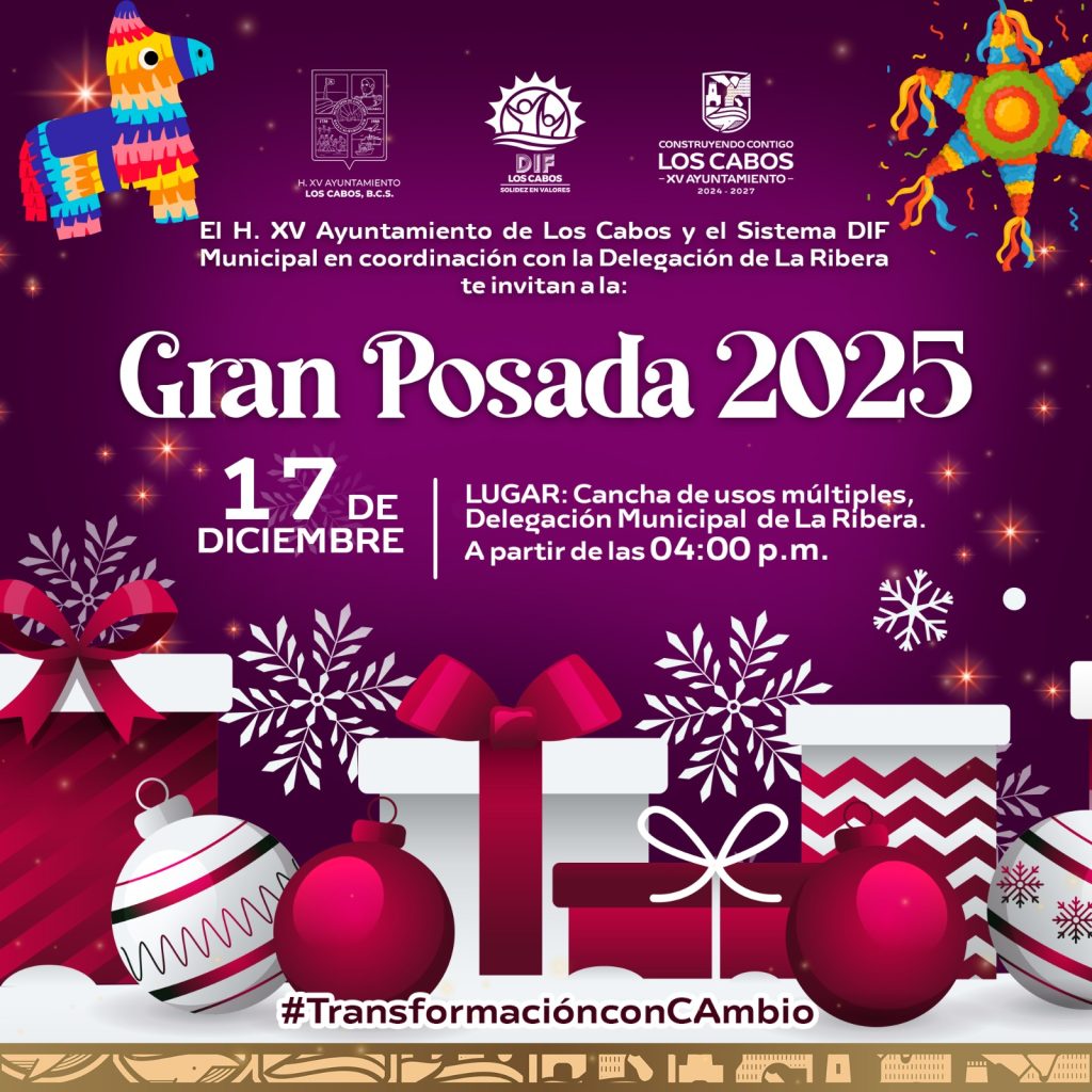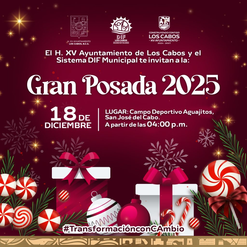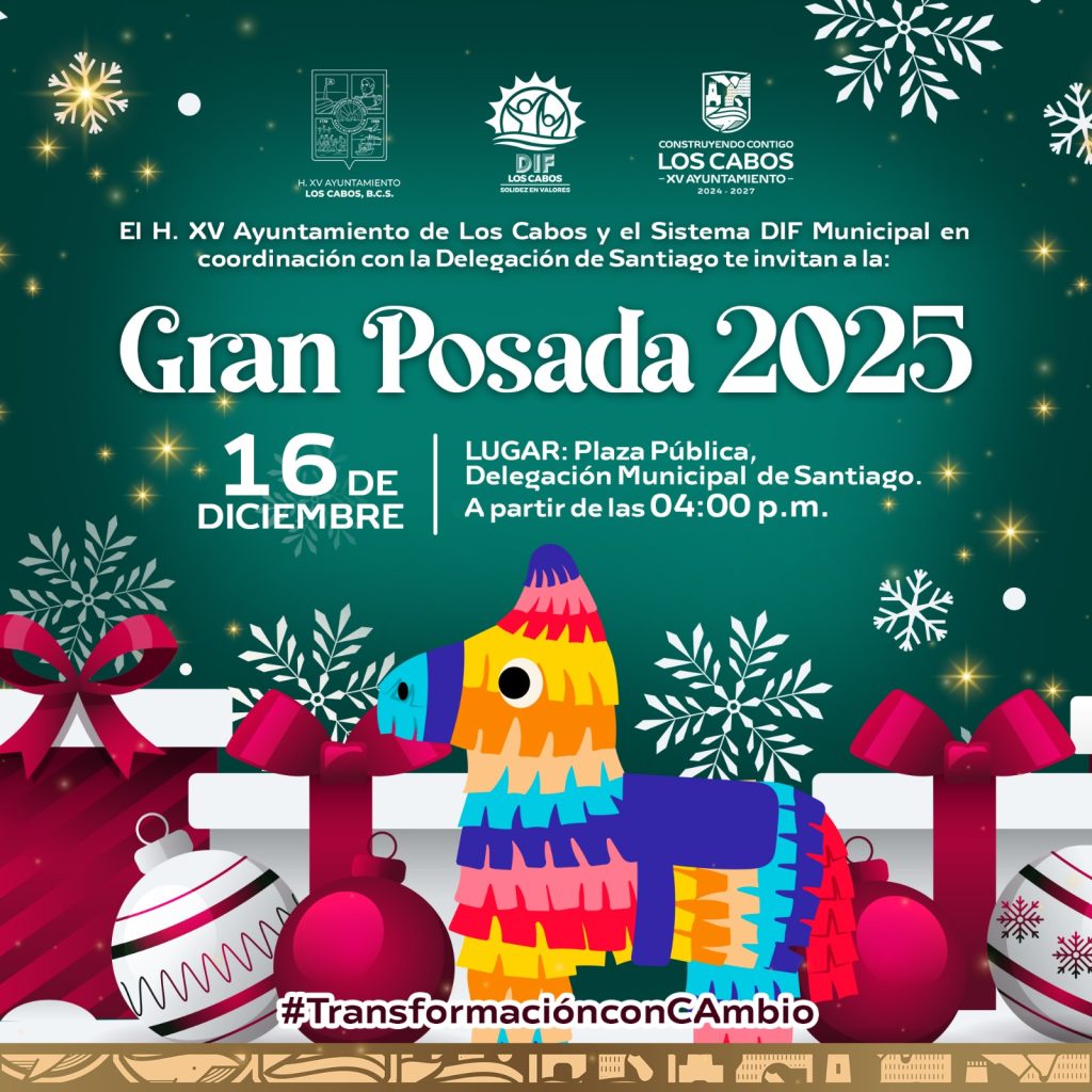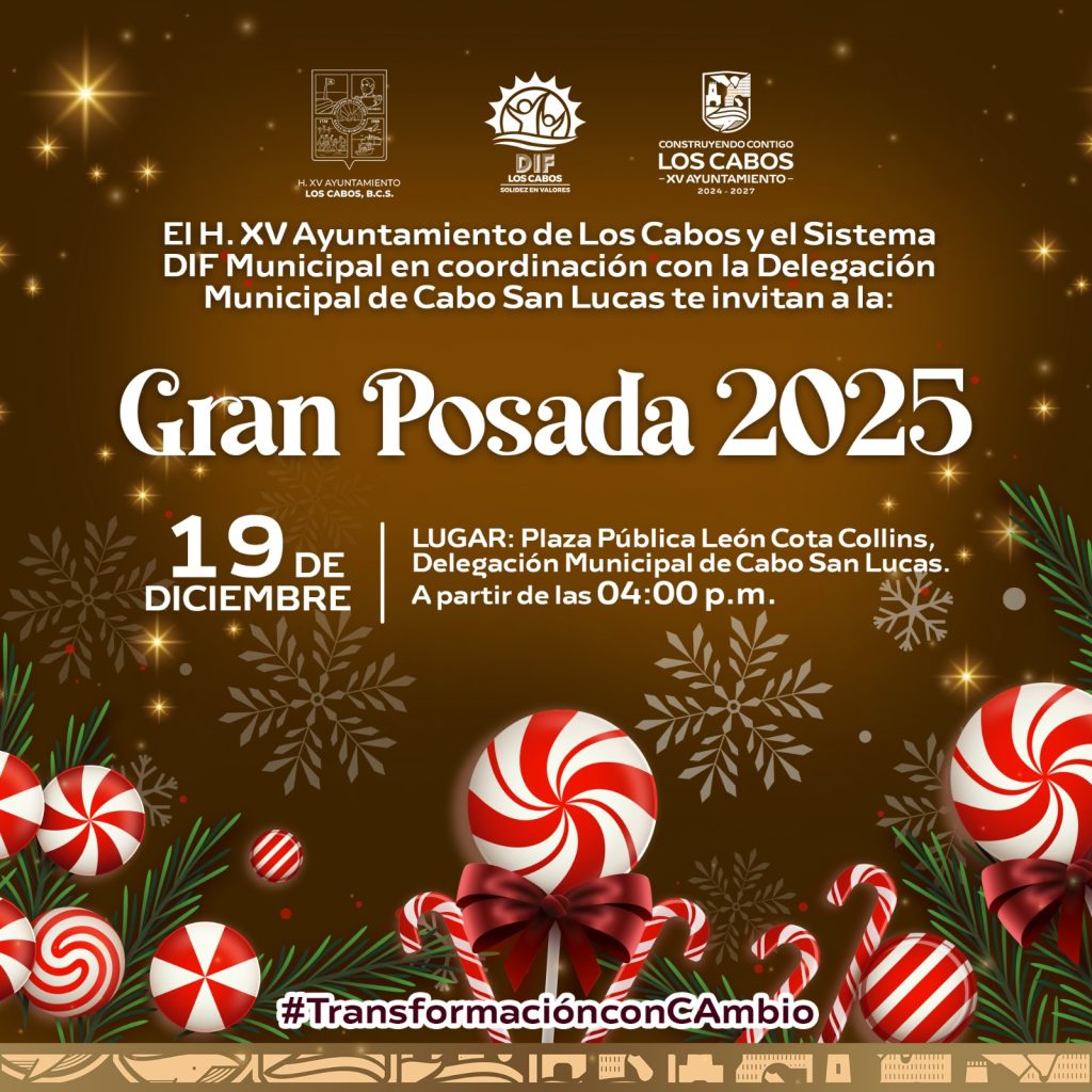 El XV Ayuntamiento de Los Cabos invita a la ciudadanía a participar y disfrutar de la Gran Posada 2025, una celebración pensada para compartir en familia en cada delegación del municipio.