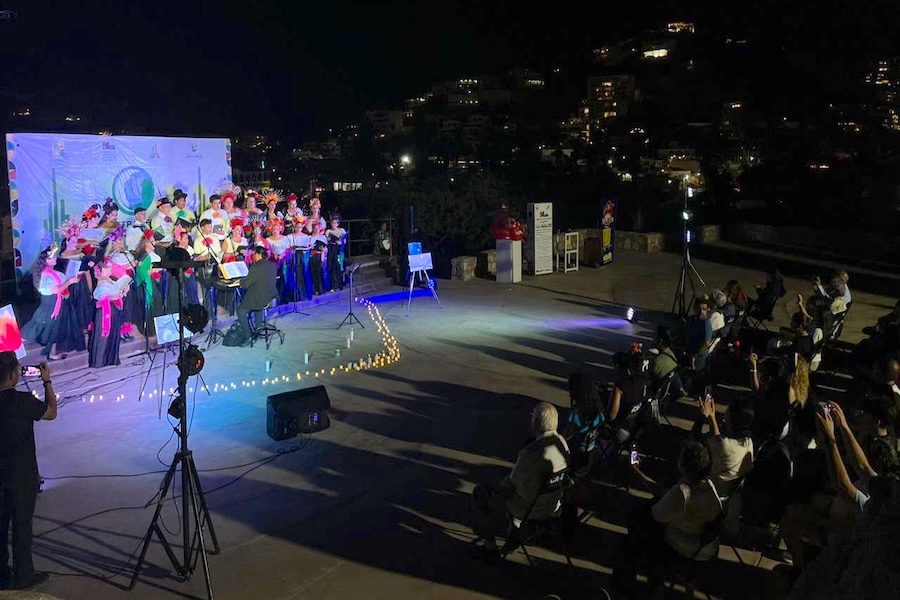 La explanada del Cerrito del Timbre en Cabo San Lucas fue sede de la emisión especial de “Letras en Plenilunio”, programa que en esta ocasión conmemoró el Día de Muertos con una jornada dedicada a la música, la poesía y las artes visuales.