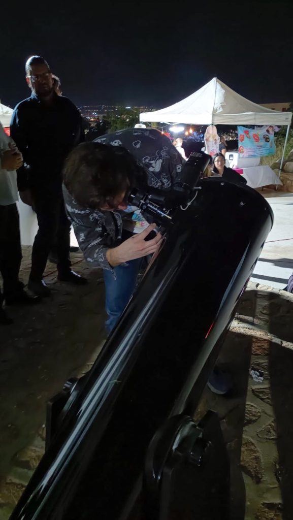 Como parte de las actividades, integrantes de Cetus, Sociedad Astronómica de Los Cabos, colocaron telescopios para la observación lunar, brindando a las y los asistentes la oportunidad de admirar el satélite natural en todo su esplendor.