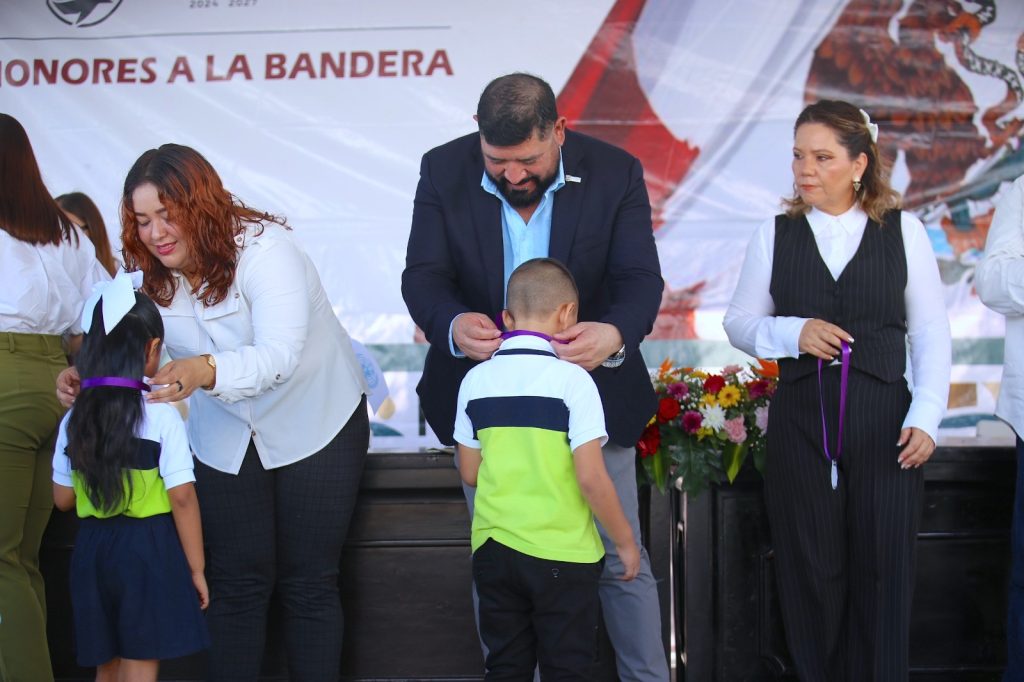 El acto cívico incluyó la presentación de banderas de la ONU por parte de alumnas y alumnos del jardín de niños “Rafael Pérez de León”, quienes recibieron una medalla por su destacada participación. En la ceremonia también estuvieron presentes la regidora Lorena Marbella González Díaz, el titular de la Dirección General de Servicios Públicos, Ernesto Montaño, así como otras autoridades municipales.