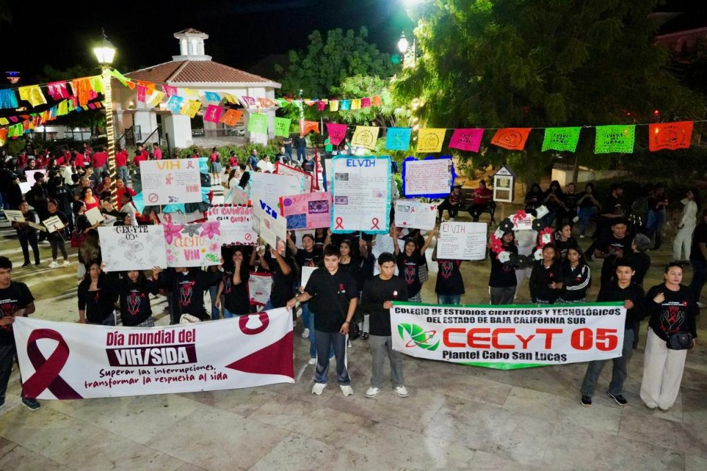 Los Cabos, Baja California Sur.- Con la participación del personal del XV Ayuntamiento de Los Cabos, instituciones educativas y diversas dependencias gubernamentales, este 01 de diciembre se llevó a cabo la Marcha Conmemorativa por el Día Mundial de la Lucha contra el VIH/SIDA, bajo el lema “Superar las interrupciones, transformar la respuesta al sida”.