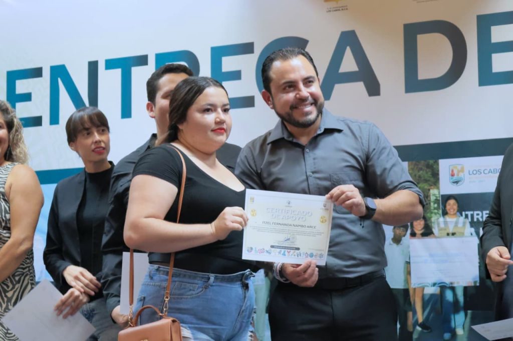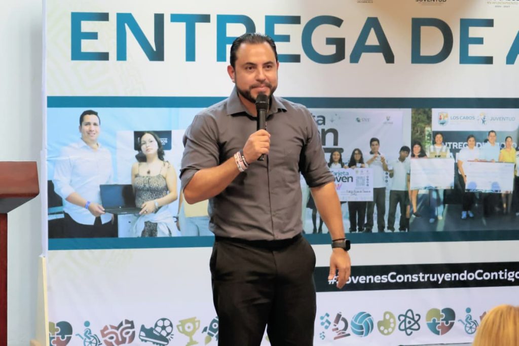 El alcalde Christian Agúndez Gómez encabezó la ceremonia, donde reconoció el compromiso del INJUVE y destacó la importancia de mantener una relación cercana con las y los jóvenes. Celebró la dedicación de emprendedores, madres jóvenes y estudiantes beneficiados, reiterando que la juventud es una prioridad para el Ayuntamiento de Los Cabos.
