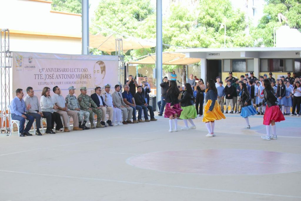 Tras los honores a la bandera, a cargo de la escolta y banda de guerra de la Dirección General de Seguridad Pública, Policía Preventiva y Tránsito Municipal, Rentería Santana destacó el legado del teniente Mijares, cuya valentía y entrega en defensa de la soberanía nacional continúa siendo un símbolo de identidad y orgullo para las y los sudcalifornianos.
