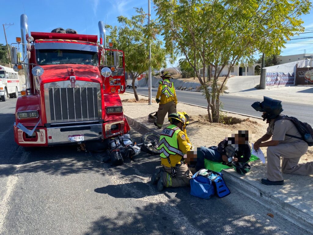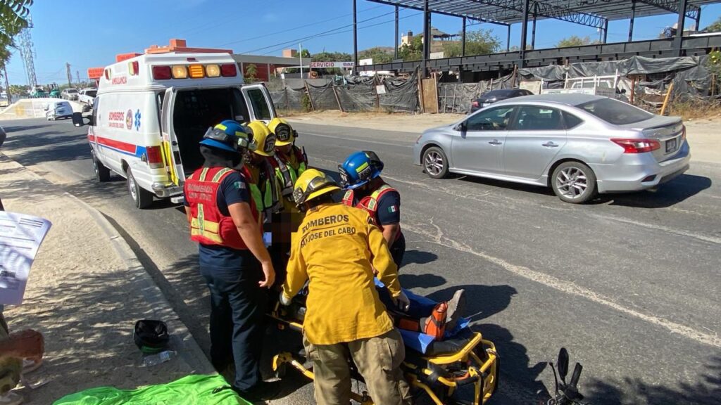 San José del Cabo, BCS.– La mañana de este jueves, un motociclista resultó lesionado luego de verse involucrado en un accidente tipo atropello sobre la carretera Transpeninsular, a la altura de la colonia Guaymitas.