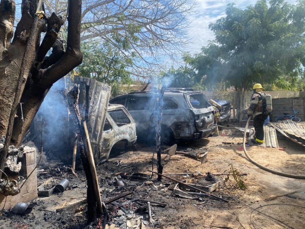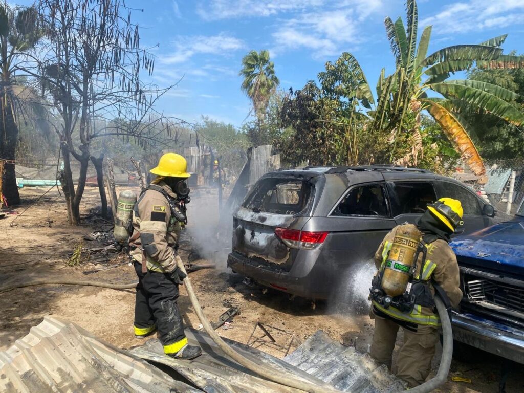 Al arribar, los elementos confirmaron que el siniestro se originó en un cuarto de aproximadamente 4×4 metros, construido de lámina y madera, el cual era utilizado como cocina exterior en un domicilio particular. El fuego también provocó daños parciales a un vehículo tipo vagoneta que se encontraba en la propiedad.