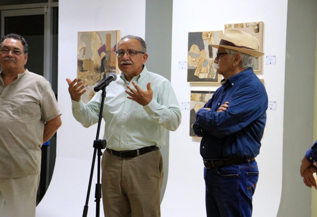 Por su parte, el artista agradeció la presencia de la comunidad universitaria y compartió el origen conceptual de la muestra. Relató que la idea surgió al observar un nopal seco sobre la arena, donde la textura del vegetal, la tierra y el entorno formaban una unidad visual que le inspiró a explorar una propuesta profundamente mexicana desde lo ocular, pero con un enfoque contemporáneo.