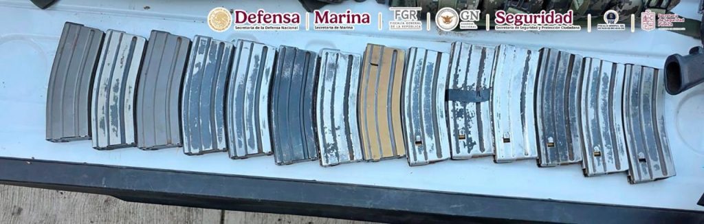 En dos acciones se detuvo a cuatro personas relacionadas con este grupo delictivo; en la primera se detuvo a una mujer de 23 años y en otra se detuvo a César Alejandro “N”, junto con Eder “N” y Estaban “N” a quienes les aseguraron armas largas, cargadores, chalecos balísticos y narcótico.