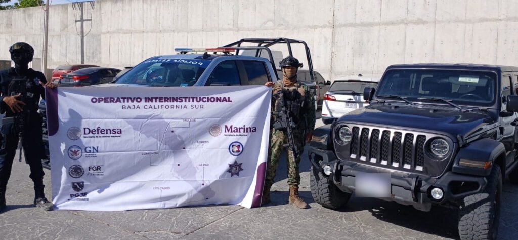 En otra acción paralela efectuada en Cabo San Lucas, fueron localizados 04 vehículos que contaban con reporte de robo en el extranjero, los cuales fueron puestos a disposición de la autoridad competente.