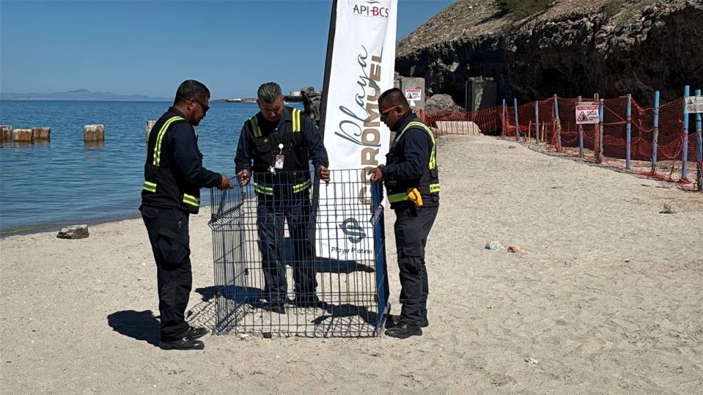 Carlos Jarquín Reyes, supervisor de Seguridad del parque acuático El Coromuel, explicó que la PROFEPA traslada los huevos a jaulas especiales construidas por la API, donde se garantiza su incubación de 45 días.