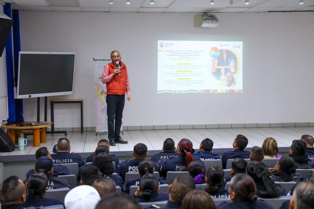Los Cabos, Baja California Sur.– En seguimiento a la estrategia permanente de capacitación y profesionalización del personal operativo, el XV Ayuntamiento de Los Cabos, a través de la Dirección General de Seguridad Pública, Policía Preventiva y Tránsito Municipal, llevó a cabo una capacitación especializada en “Prevención de la Discriminación”, dirigida a elementos de la Policía Preventiva.