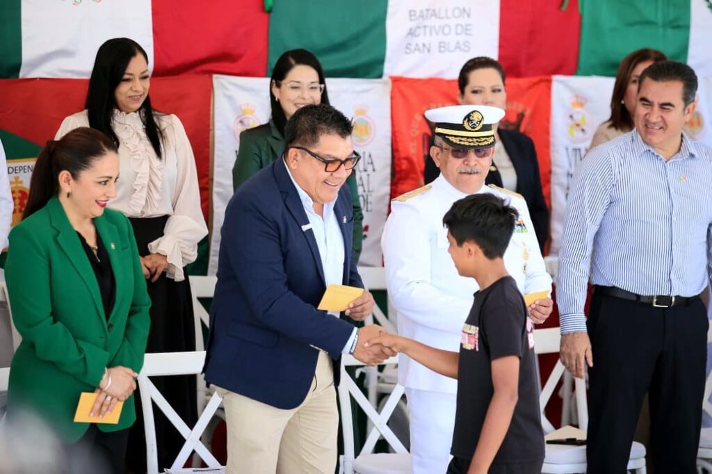 “El deber de honrar nuestros símbolos patrios es una práctica que fortalece nuestra identidad como nación. Esta conmemoración permite que niñas, niños y jóvenes reflexionen que México, con la fortaleza de su gente y sus instituciones, tiene asegurado un destino de soberanía, independencia, libertad y justicia”, expresó.