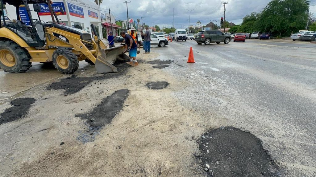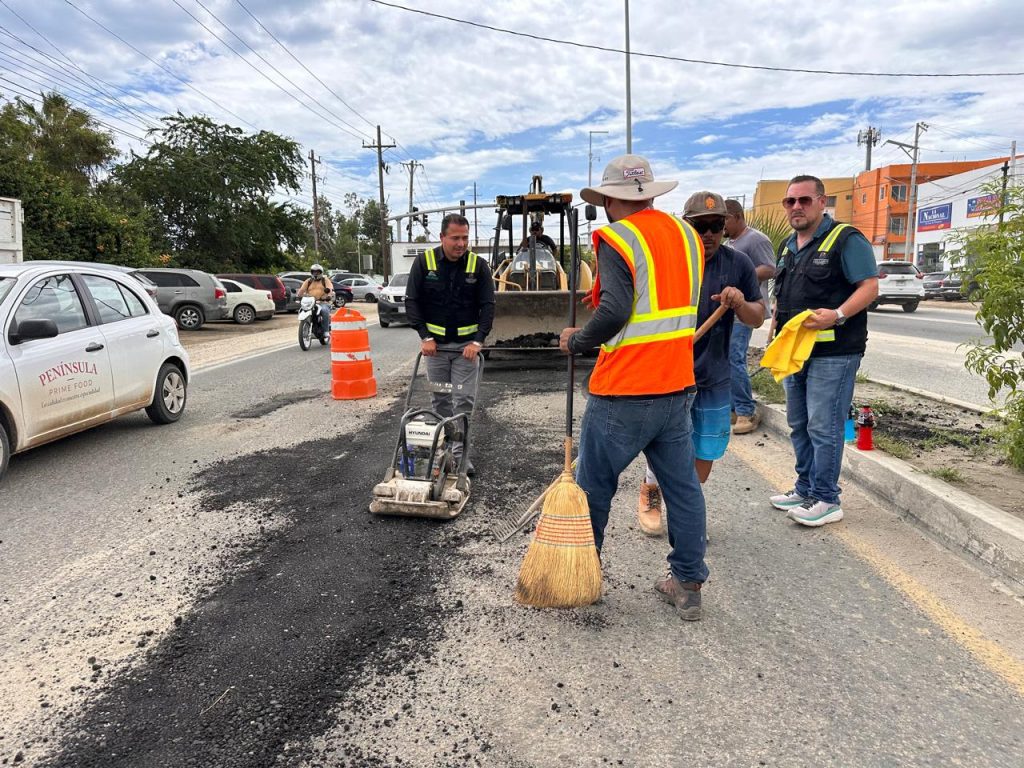 Las labores de bacheo comenzaron en el tramo de la colonia El Rosarito y se extenderán hacia Guaymitas, hasta el aeropuerto de San José del Cabo para poder atender todos los baches que se encuentran en la carretera.