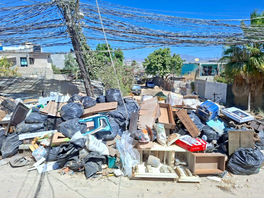 Los Cabos, Baja California Sur.– Personal del servicio público qie integra las distintas dependencias en la Delegación de Cabo San Lucas, realizaron jornadas de concientización y limpieza en las colonias Leonardo Gastélum Villalobos y Cactus, donde se llevaron a cabo trabajos de recolección de basura doméstica, cacharros y residuos de gran volumen en calles, espacios públicos y arroyos.