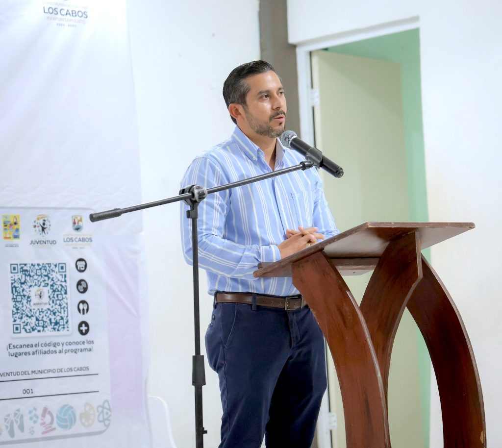 Los Cabos, Baja California Sur.- Con el objetivo de impulsar el bienestar, la participación y el desarrollo integral de las juventudes, el XV Ayuntamiento de Los Cabos, a través del Instituto de la Juventud (INJUVE), llevó a cabo la primera entrega del programa “Tarjeta Joven” en las instalaciones del Cobach 04 de Cabo San Lucas, con la presencia del director municipal de Gobierno Amado Ruiz Espinoza en representación del alcalde Christian Agúndez Gómez y el director general del INJUVE José Luis Gutiérrez Crespo.