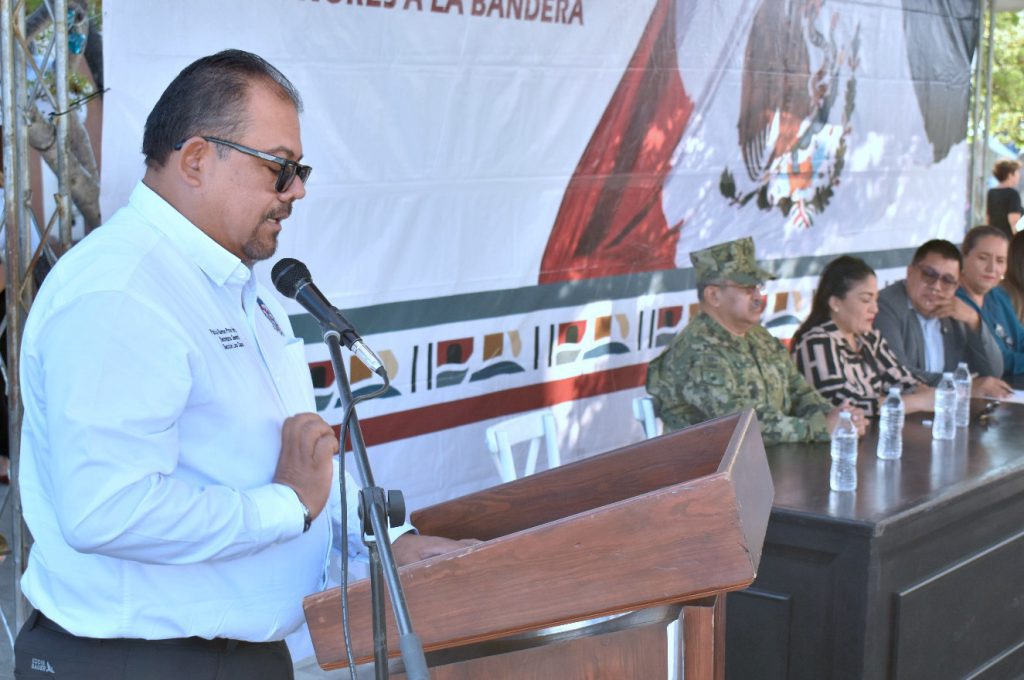 Los Cabos, Baja California Sur.- En el marco de la ceremonia cívica de honores a la bandera, el XV Ayuntamiento de Los Cabos reconoció el compromiso y la entrega del personal sindicalizado. En representación del alcalde Christian Agúndez Gómez, el secretario general, Alberto Rentería Santana, encabezó el acto cívico, acompañado de integrantes del Cabildo, diputadas locales, representantes de las fuerzas armadas, personal docente, estudiantil y servidores públicos municipales.