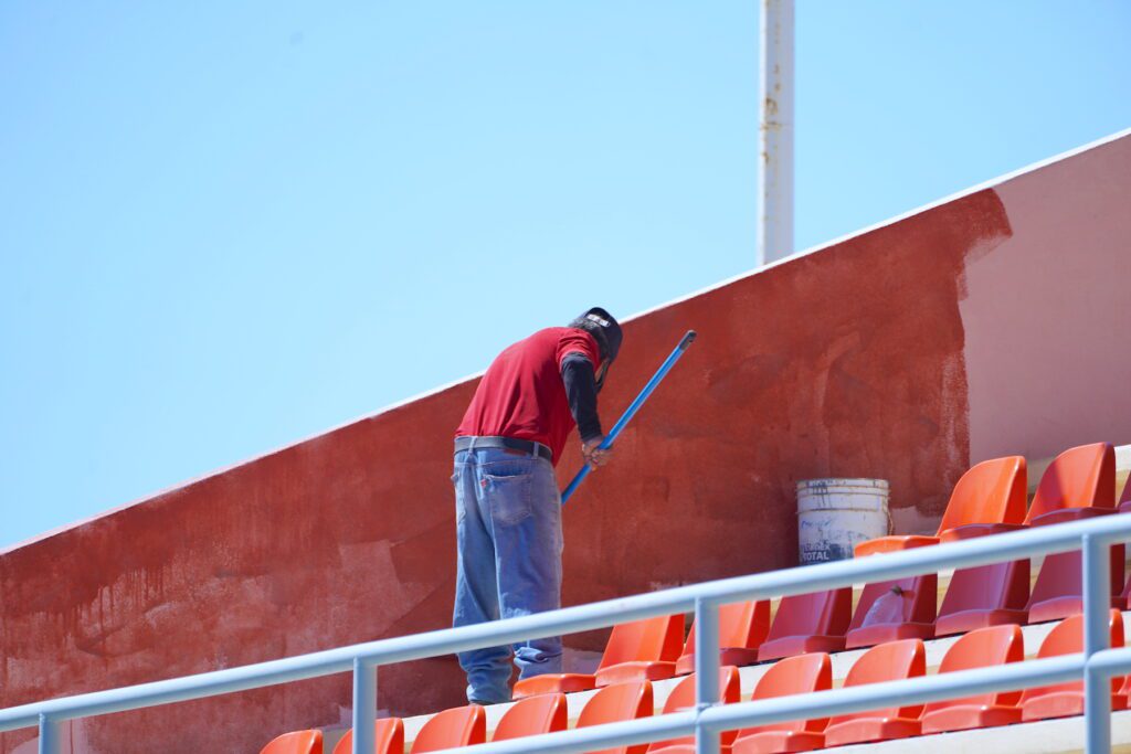 Los Cabos, Baja California Sur.– El XV Ayuntamiento de Los Cabos, a través del Instituto del Deporte (INDEM), realiza trabajos de rehabilitación en el estadio de fútbol americano Bicentenario, en Cabo San Lucas, con el objetivo de mejorar las condiciones del espacio y ofrecer instalaciones dignas a las y los deportistas.