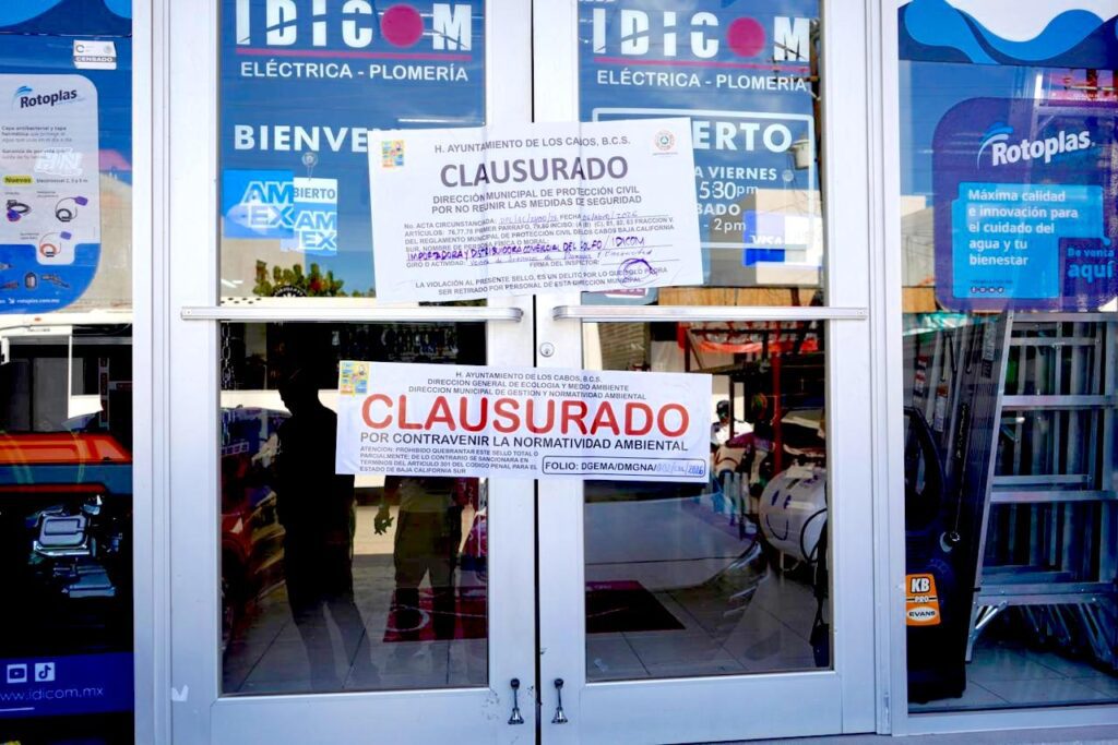 Los Cabos, Baja California Sur.– Autoridades del XV Ayuntamiento de Los Cabos realizaron la clausura de un establecimiento en Cabo San Lucas, tras detectar diversas irregularidades durante un operativo derivado de una denuncia ciudadana por la disposición ilegal de escombros en una zona rural.