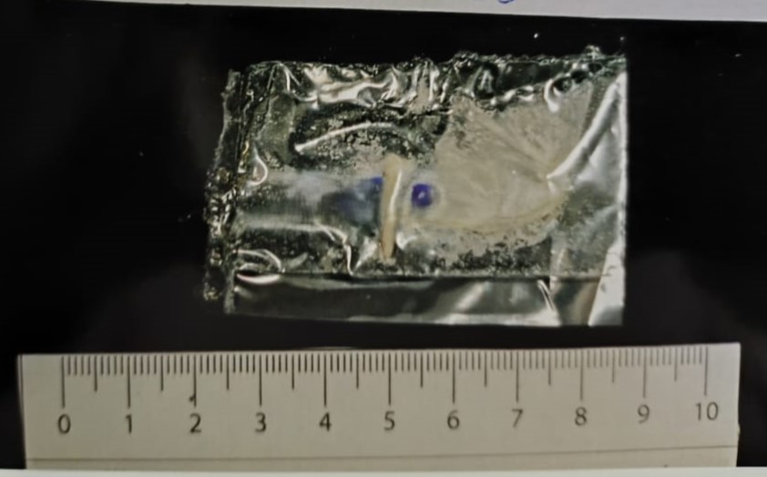 Por lo anterior, los agentes acudieron al punto señalado y observaron que Miguel “N” se encontraba fuera del vehículo, del que cayeron dos envoltorios de plástico color blanco con una sustancia sólida y cristalina, por lo que, los policías se acercaron a realizar una inspección en la que le aseguraron 77 gramos 421 miligramos de clorhidrato de metanfetamina, una báscula tipo gramera, una pipa de cristal y 400 pesos.