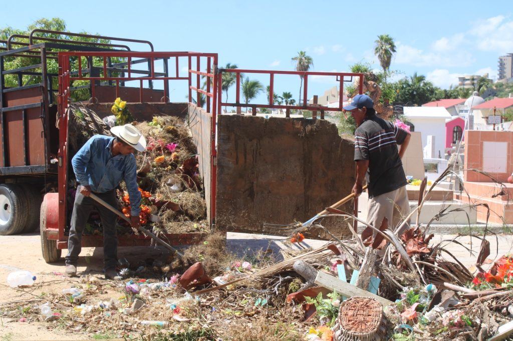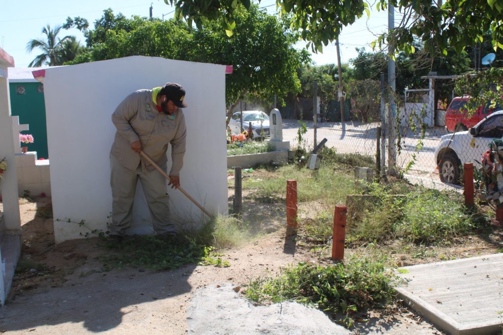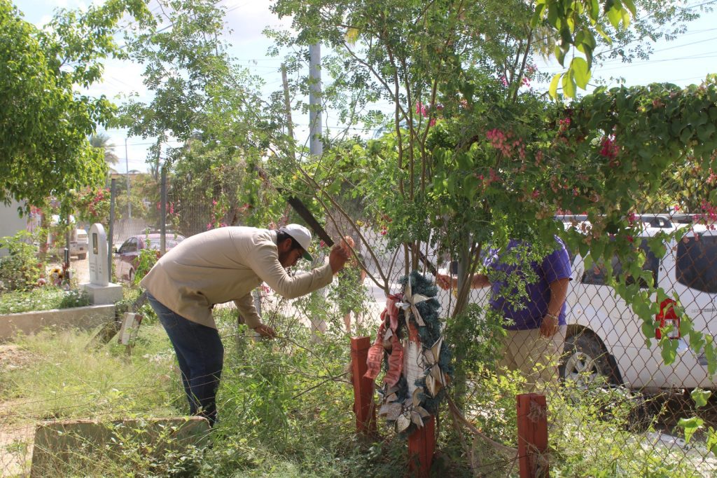 Los Cabos, Baja California Sur.- En vísperas de la celebración del Día de Muertos, este 01 y 02 de noviembre, el equipo de la Dirección General de Servicios Públicos intensifica los trabajos de limpieza general, poda y retiro de desechos en los 17 panteones municipales distribuidos en el municipio, con el propósito de recibir a las familias en espacios limpios, seguros y ordenados.