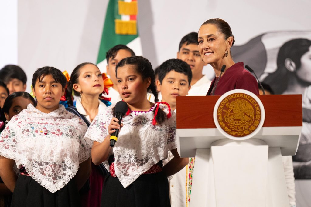 • “Es atención a las causas también, dar acceso a la cultura a todas y a todos y al mismo tiempo la defensa, el reconocimiento de las lenguas originarias a través de las niñas y los niños”, destacó la Jefa del Ejecutivo Federal