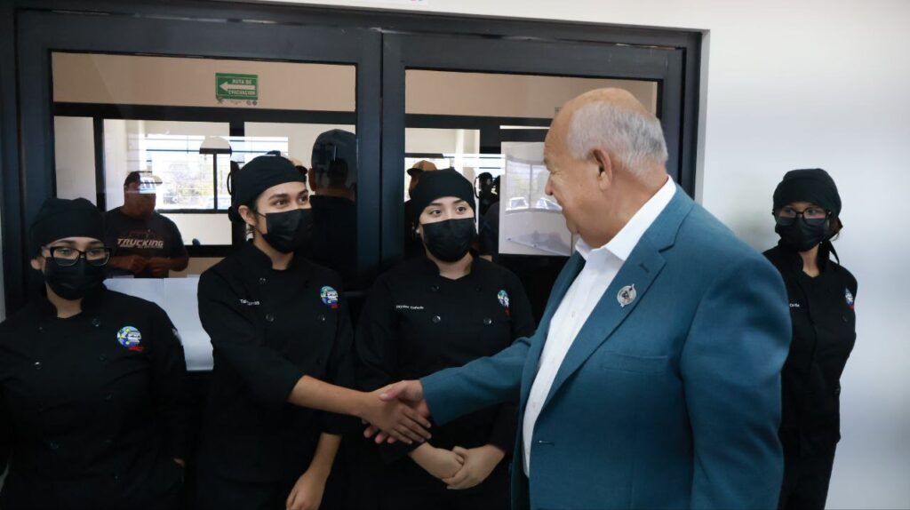 Acompañado por el rector Dante Arturo Salgado González y el alcalde de Los Cabos, Christian Agúndez Gómez, el mandatario destacó que este nuevo espacio, en el que se invirtió un millón de pesos, fortalece la formación práctica de las y los estudiantes y amplía sus posibilidades de incorporarse con mayor preparación al sector turístico de la región.